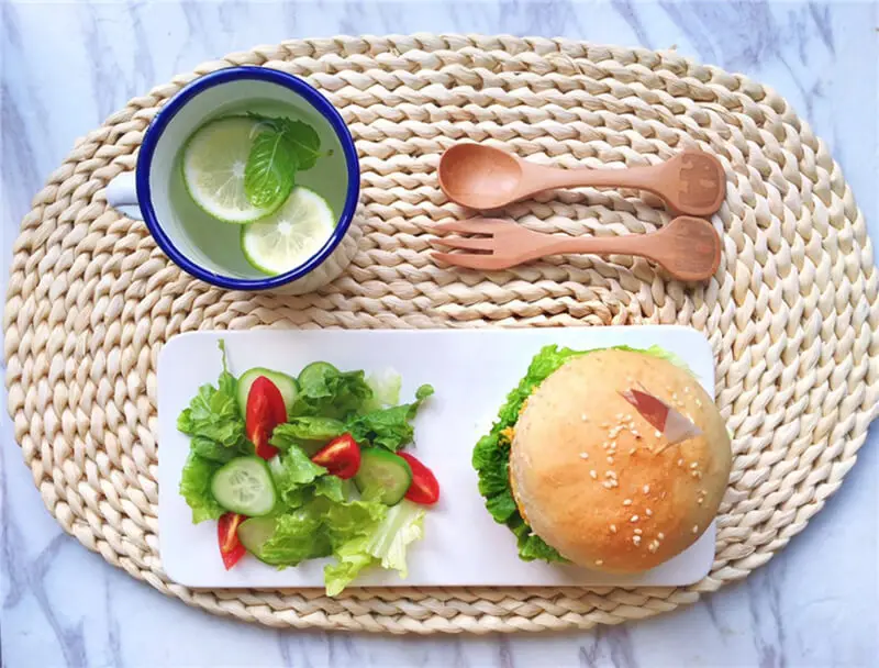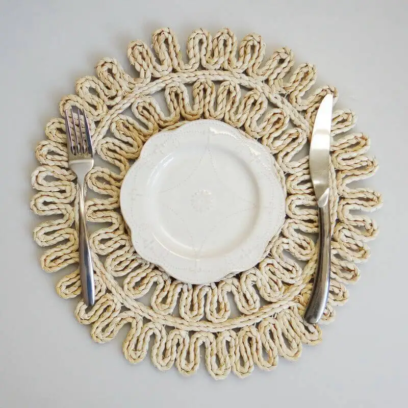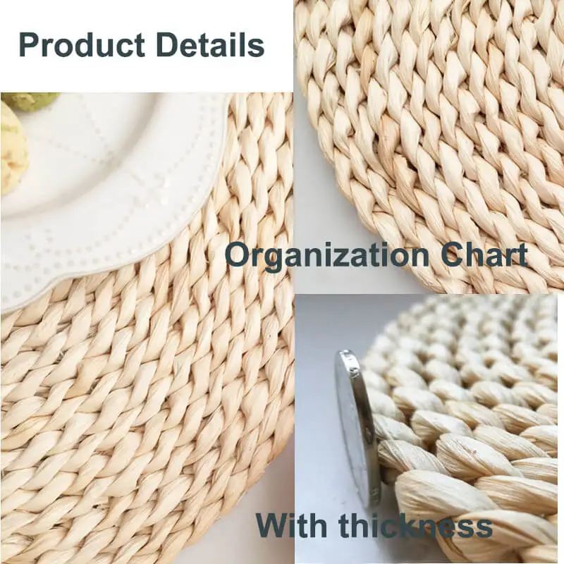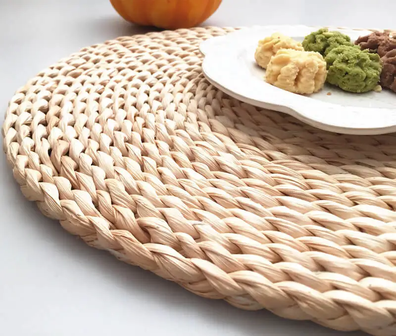 Home > Products > Table series > I@home Heat Resistant Macrame Oval Grass Natural Braided Straw Round Table Mat Placemat