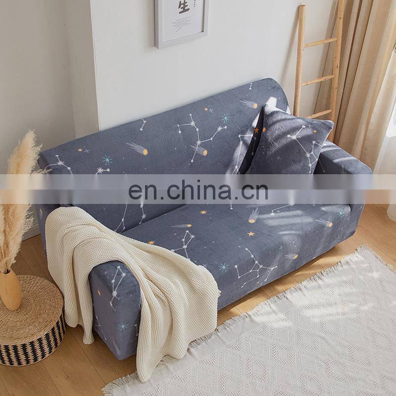 I@home Protective Light Blue Lucky Star Pattern Full Fabric Modern Elastic Sofa Cover Stretch Printed