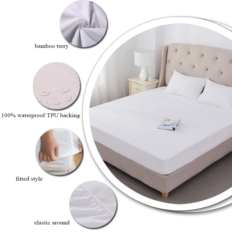 2018 Amazon Hot Selling Cotton Bamboo Terry Bed Bugs Waterproof Mattress Protector Mattress Cover Pad