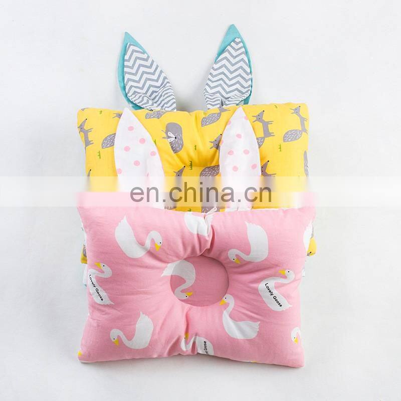 2018 New Product Wholesale Ear 100% Cotton Fabric Baby Pillow Flat Head