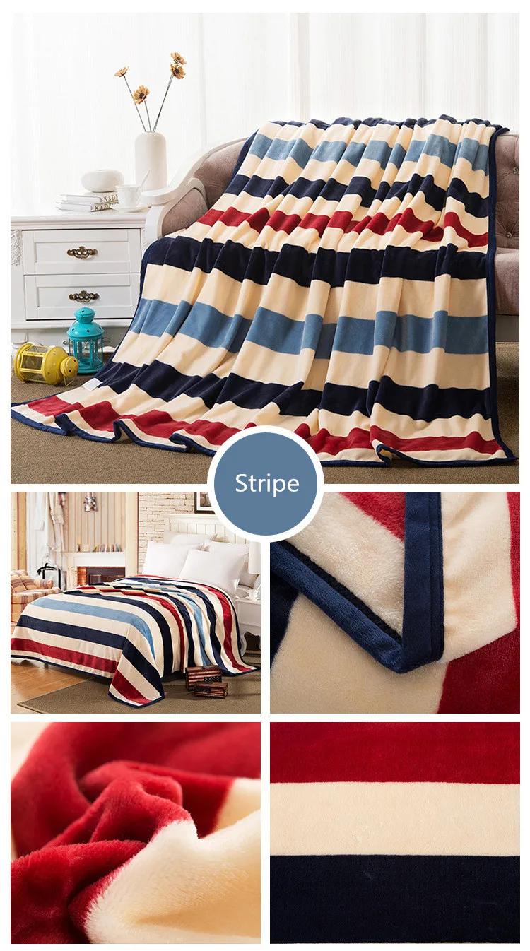 Amazon Hot Sale High Quality Cheap Wholesale Printed Stripe Coral Polyester Flannel Fleece Blanket European Design