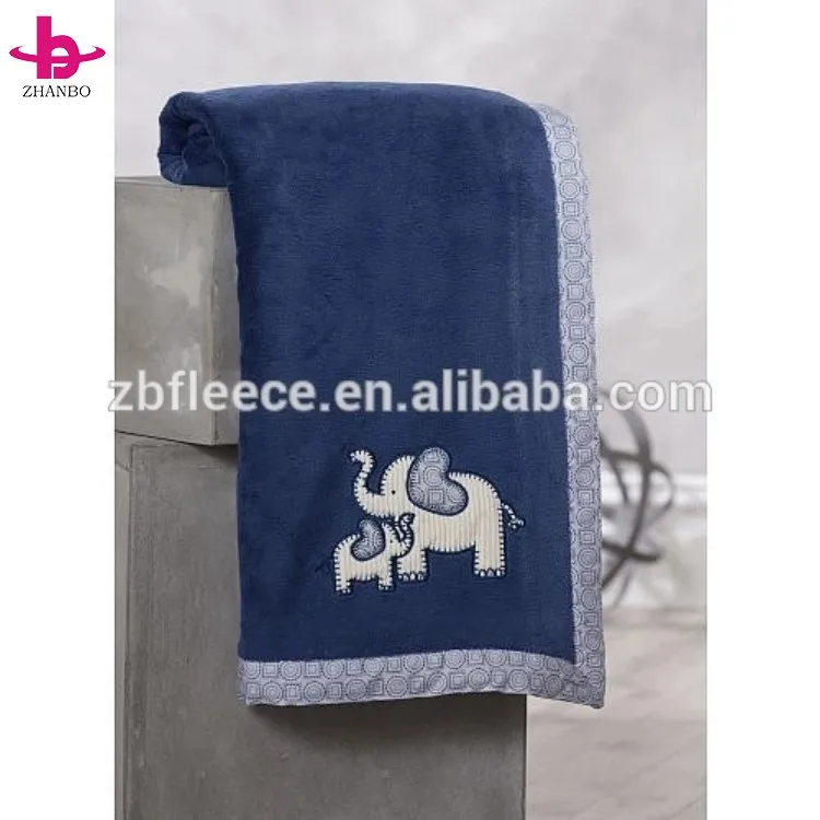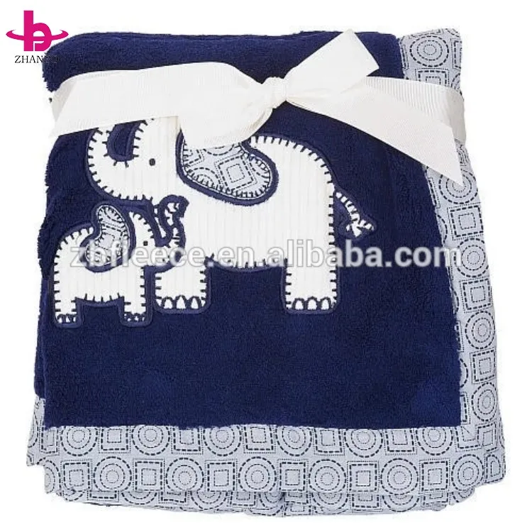Home > Products > Baby and Kids Blanket > 30''X40'' Navy Blue Double Ply Coral Fleece Fabric- Elephant Applique -4cm Printed Fabric Cover Edge Couverture Bebe