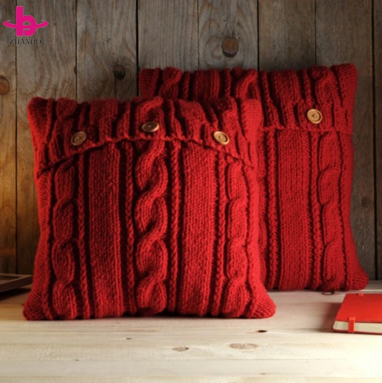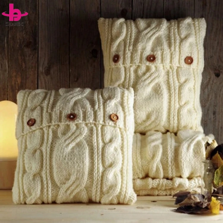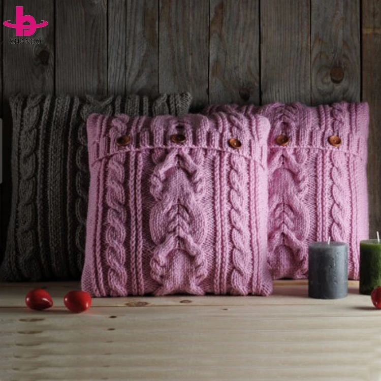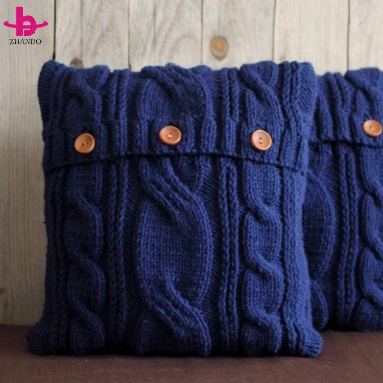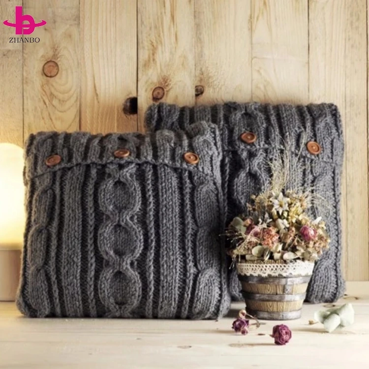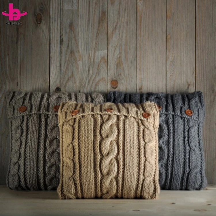 Hot Sale Factory Direct Custom Made Sofa Cable Knitted Pillow Case With Wooden Buttons