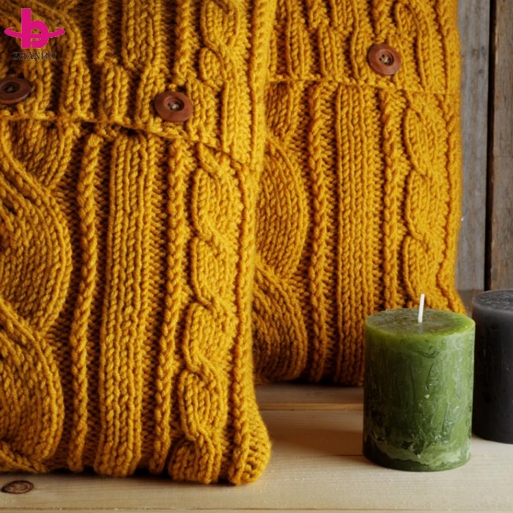 Hot Sale Factory Direct Custom Made Sofa Cable Knitted Pillow Case With Wooden Buttons