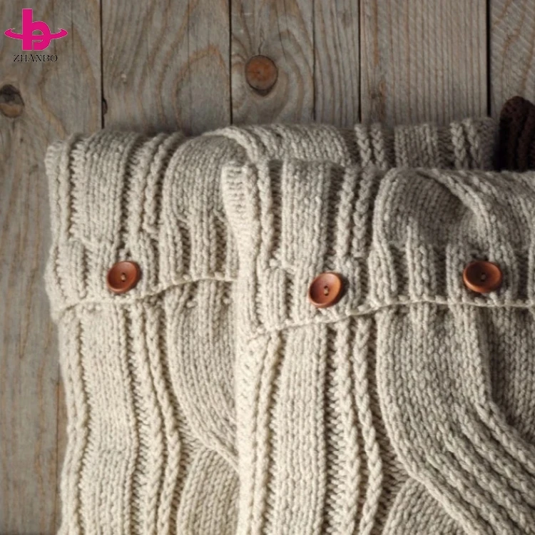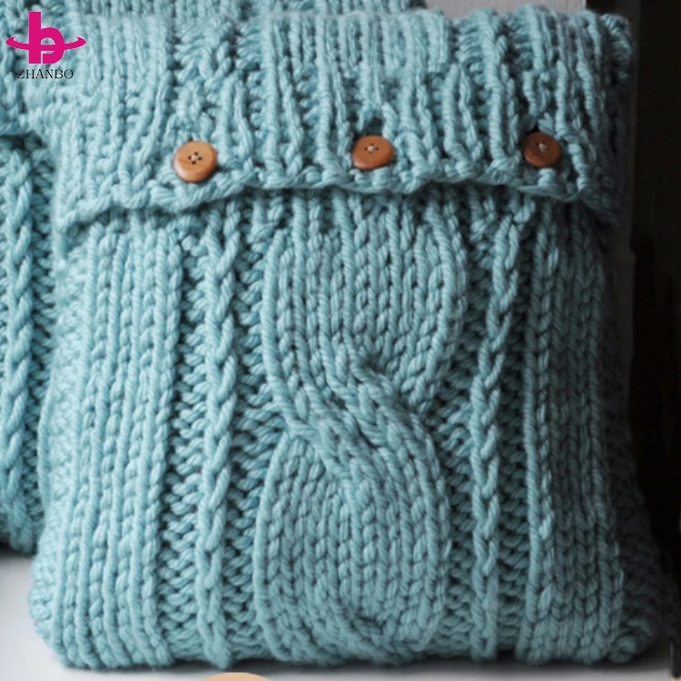 Hot Sale Factory Direct Custom Made Sofa Cable Knitted Pillow Case With Wooden Buttons