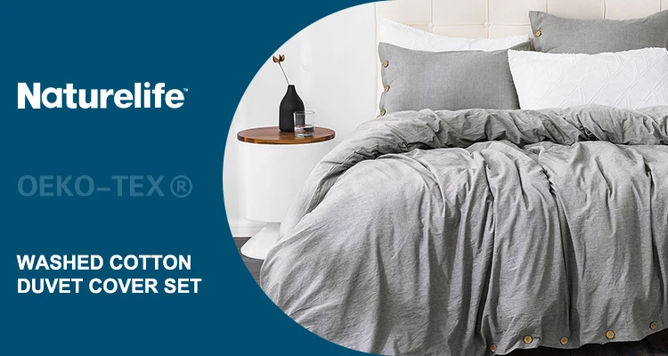 Fashion Comfortable Super King Anti-Wrinkle Cotton Linen Blended Super King Quilt Duvet Cover Set