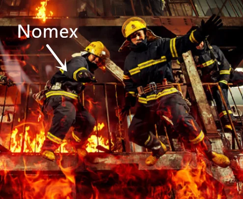 Nomex fiber has excellent high temperature resistance and flame retardancy, good dimensional stability, good mechanical properties, soft handfeel, good spinnability, etc. It is one of the most widely used high temperature resistant fibers. Spacesuit or fire service.