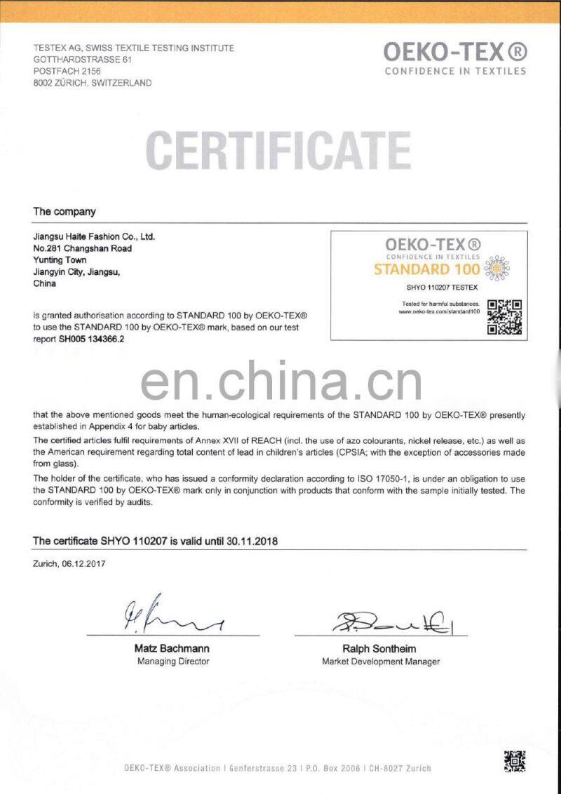 A: BSCI, ISO9001, OEKO-TEX Standard(ⅡGrade), Azo