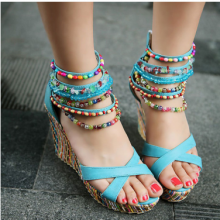 Slope Heel Bohemian Style Handmade Beaded Women's Sandals Large Size