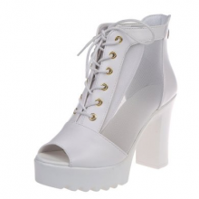 High Heeled Roman Sandals Women's Fishbeak Boots Thick Heeled Hollow Strap Sandals