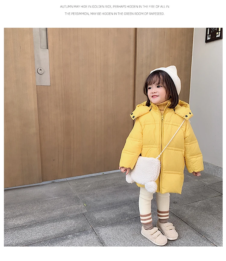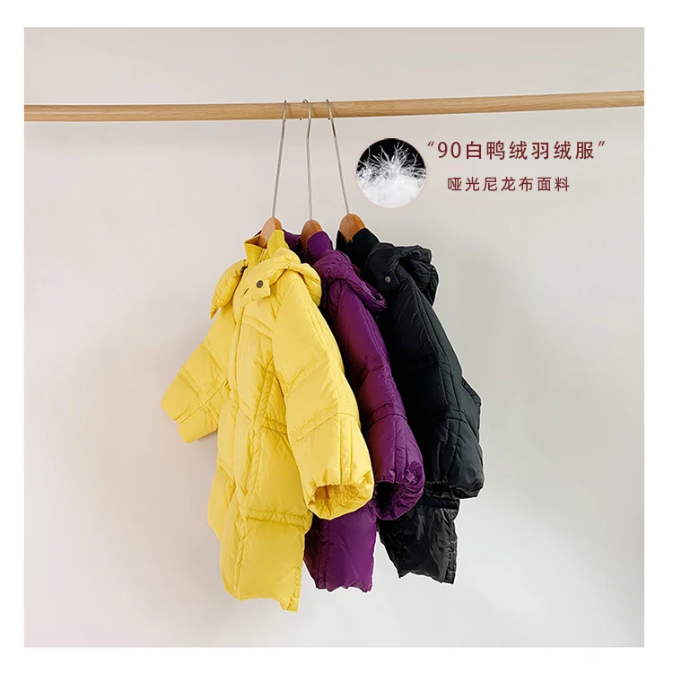3646/Hot Wholesale Thick Kids Winter Hooded Down Coat High Quality Solid Color Girls Fashion Down Jacket