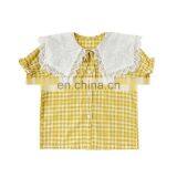 8278/Original Brand Luxury Kids Shirt Baby Girls Boutique Fresh Plaid Top With Lace Turn Down Collar