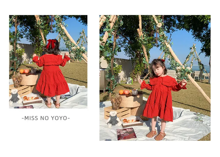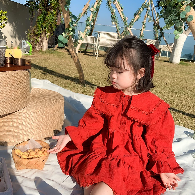 6729 New Fashion Korean Spring Baby Girls Turndown Collar Casual Dress