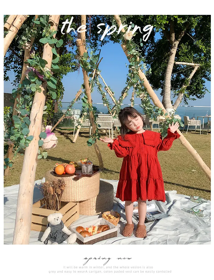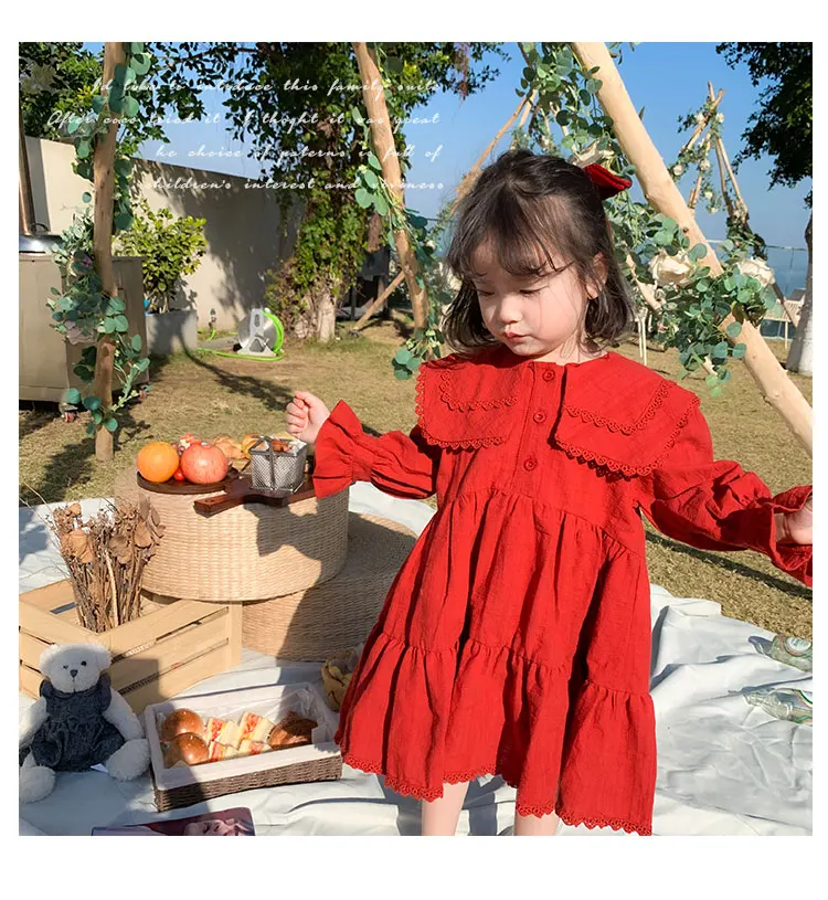 C1083 Fashion Baby Clothing Baby Girls' Dress Spring Turndown Collar Lace Dress