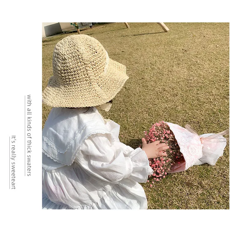 5867 Kids Clothes Spring New Design Baby Girl Petal Collar Sweater Coat