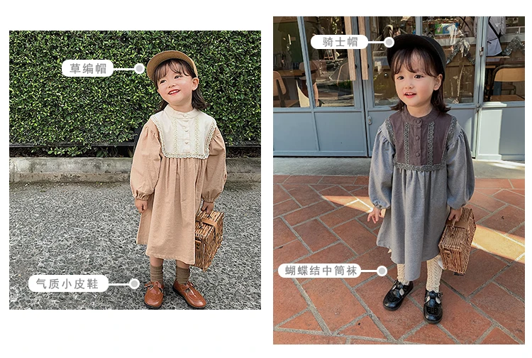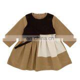 6537/England Style Fashion Kids Clothing Baby Girls' Casual Dresses Color Blocking Baby-doll Dress