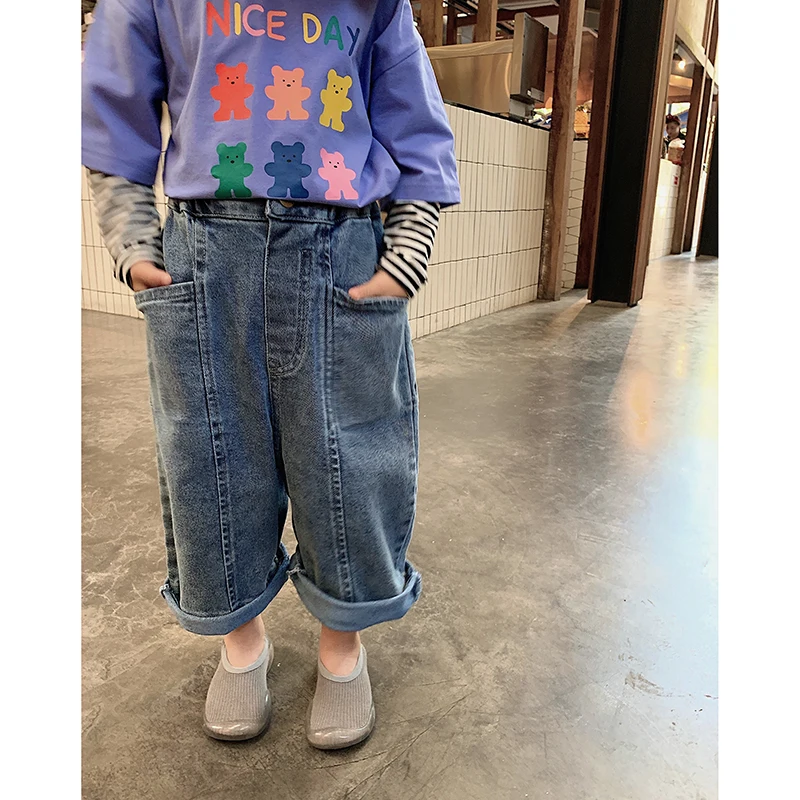 Home > Products > 2020 Spring clothes > 6041 High Quality Kids Loose Pants Baby Girl Blue Fashion Cotton Jeans Trouser