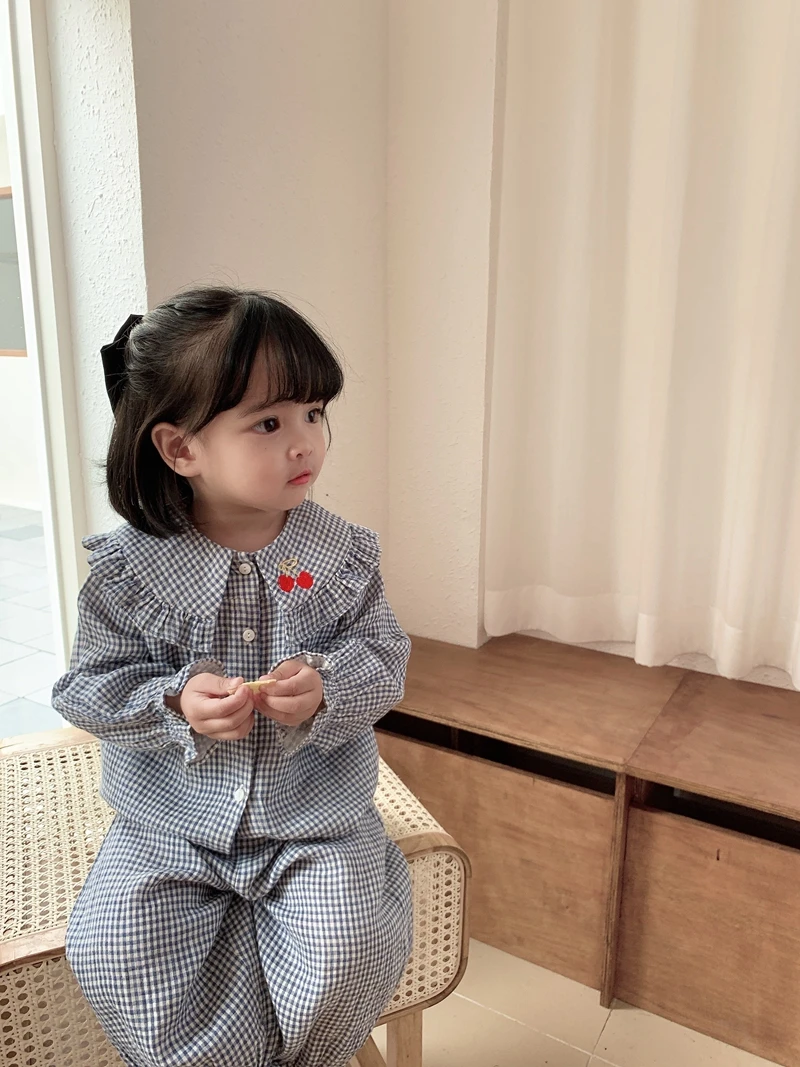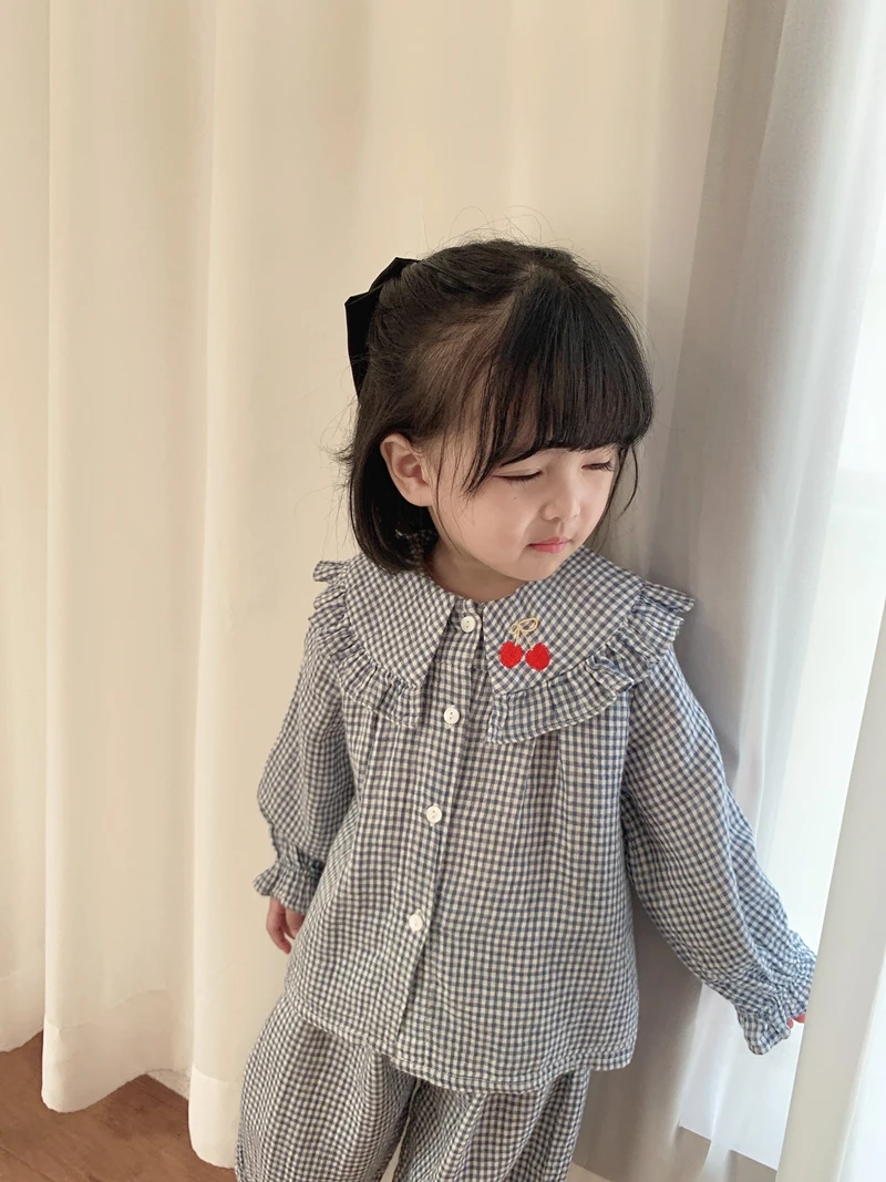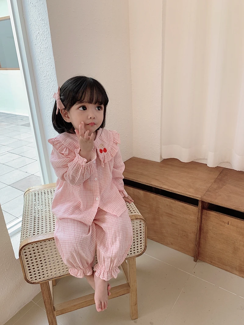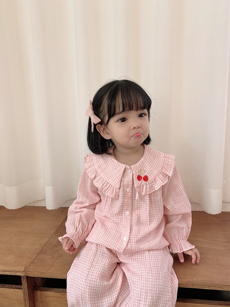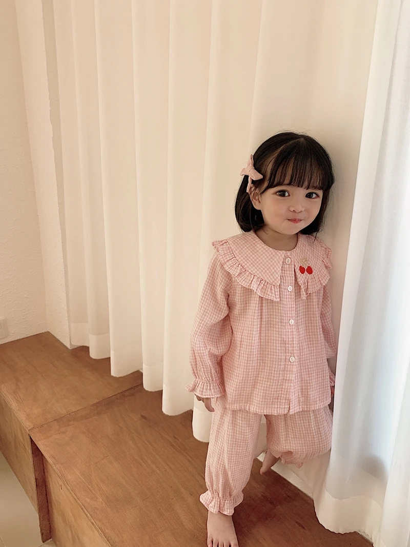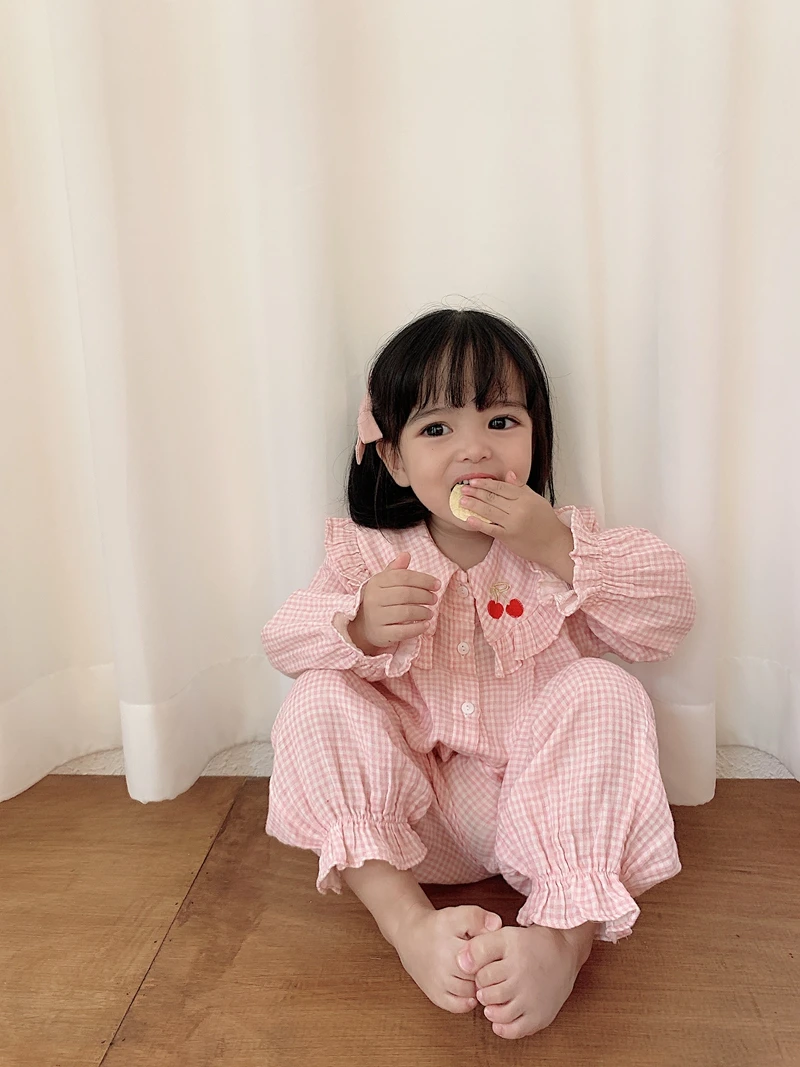 Home > Products > 2020 Spring clothes > 6628/Cute Cherry Embroidery Hot Sell Kids Children Pajamas Sets Long Sleeve Casual Girls Sleepwear