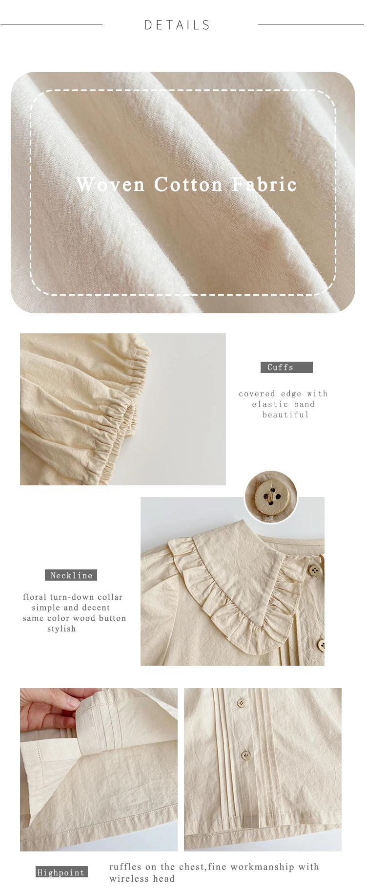 *Design: turn down colllar, ruffles.