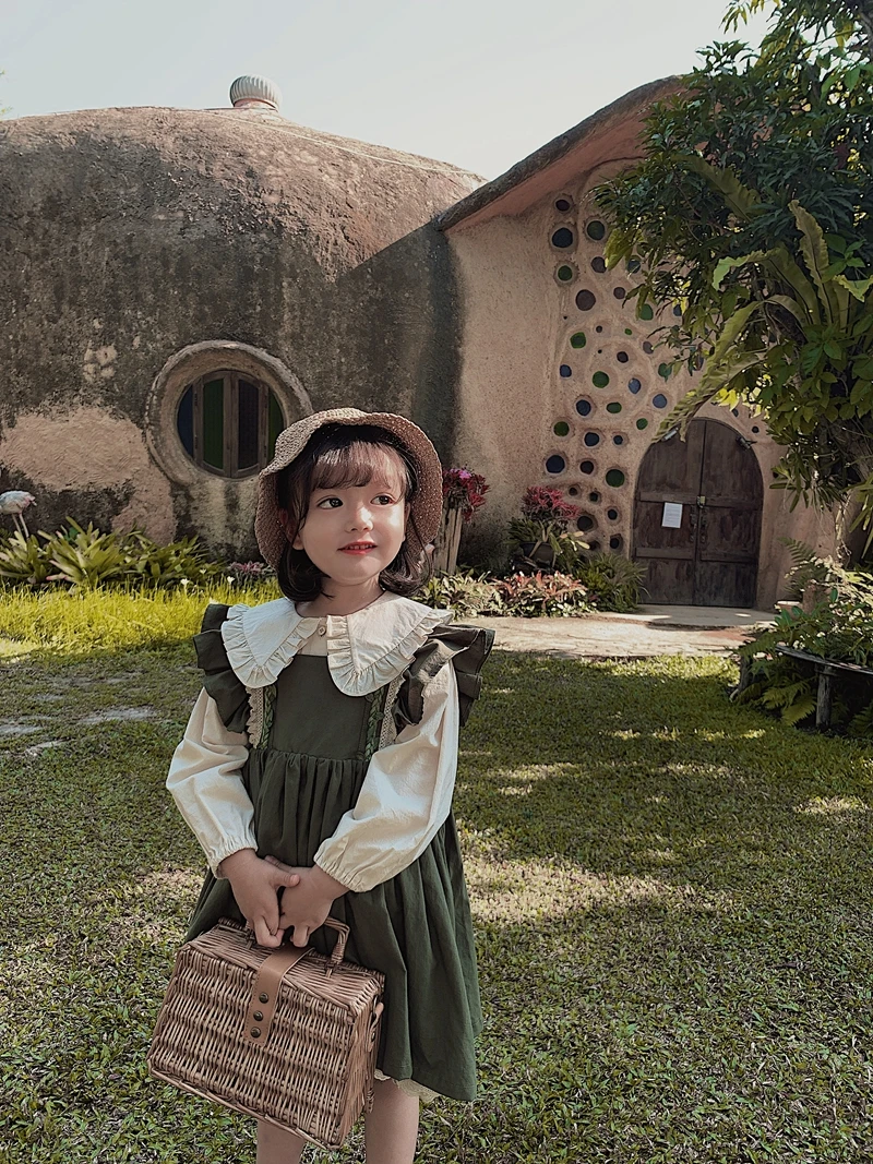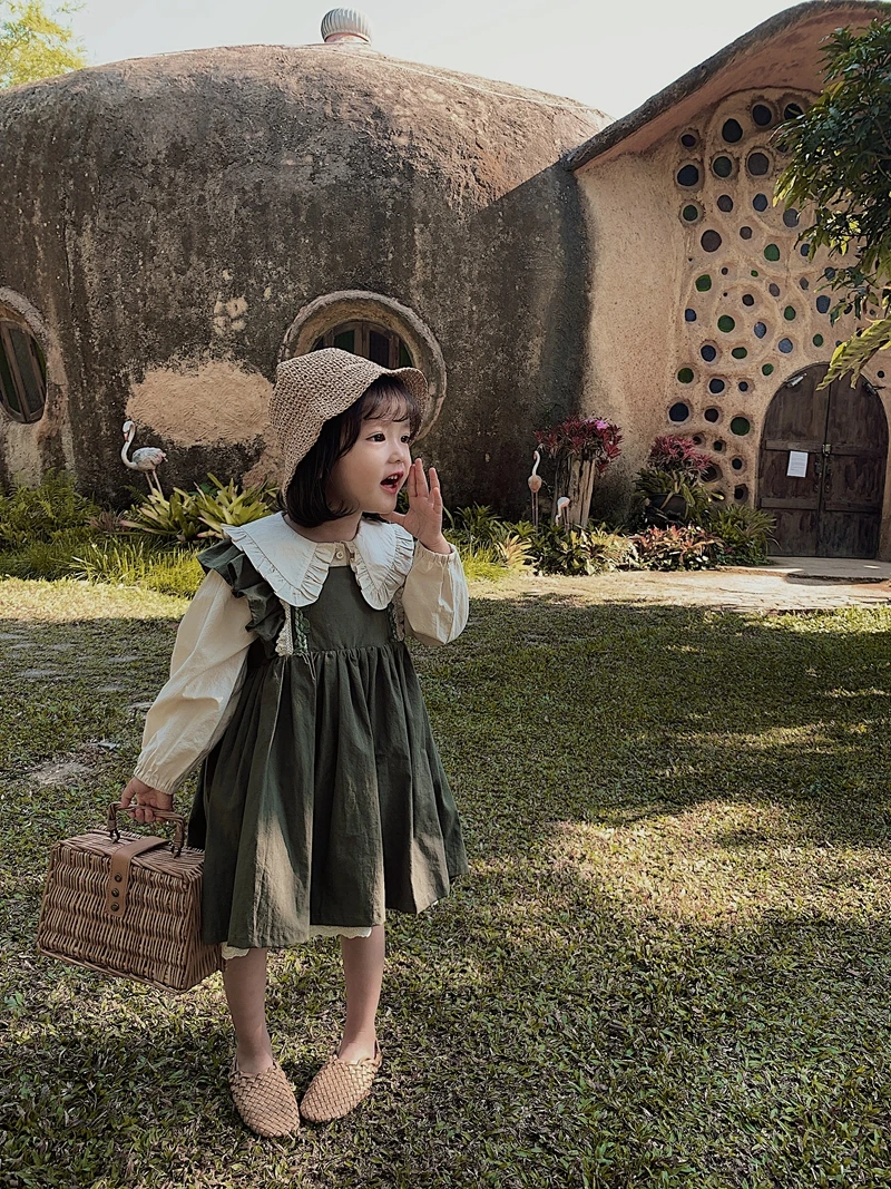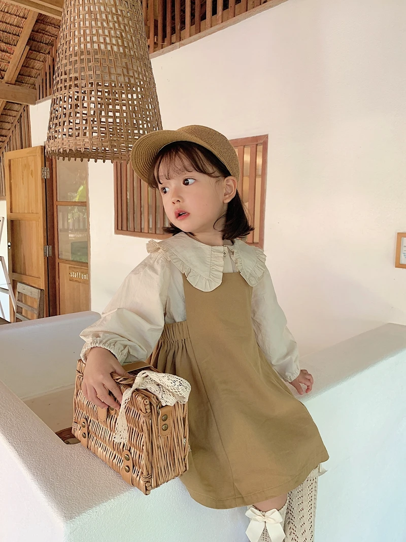 6664/Solid Simple Baby Girls Cotton Dresses Korea Fashion Sweet Suspender Skirt