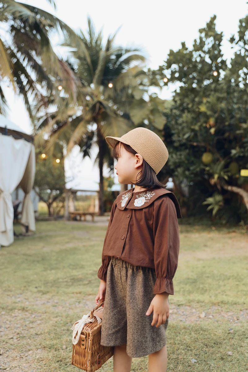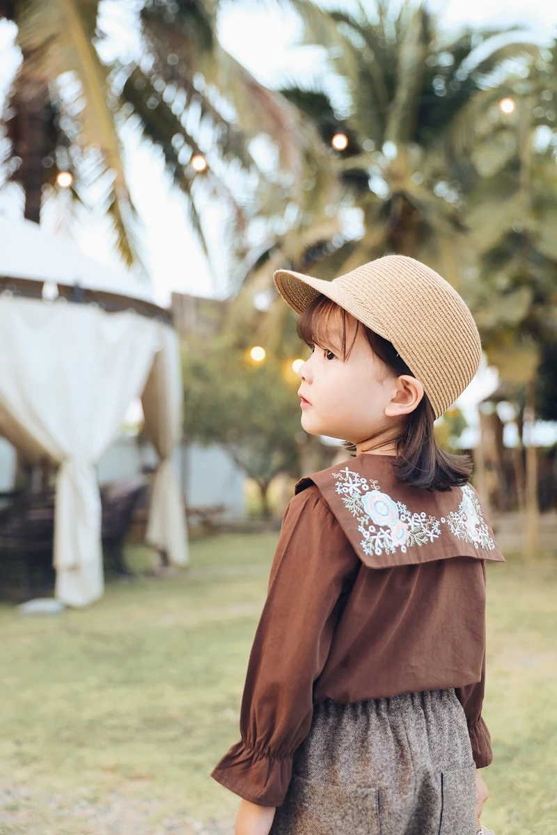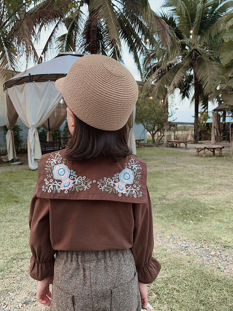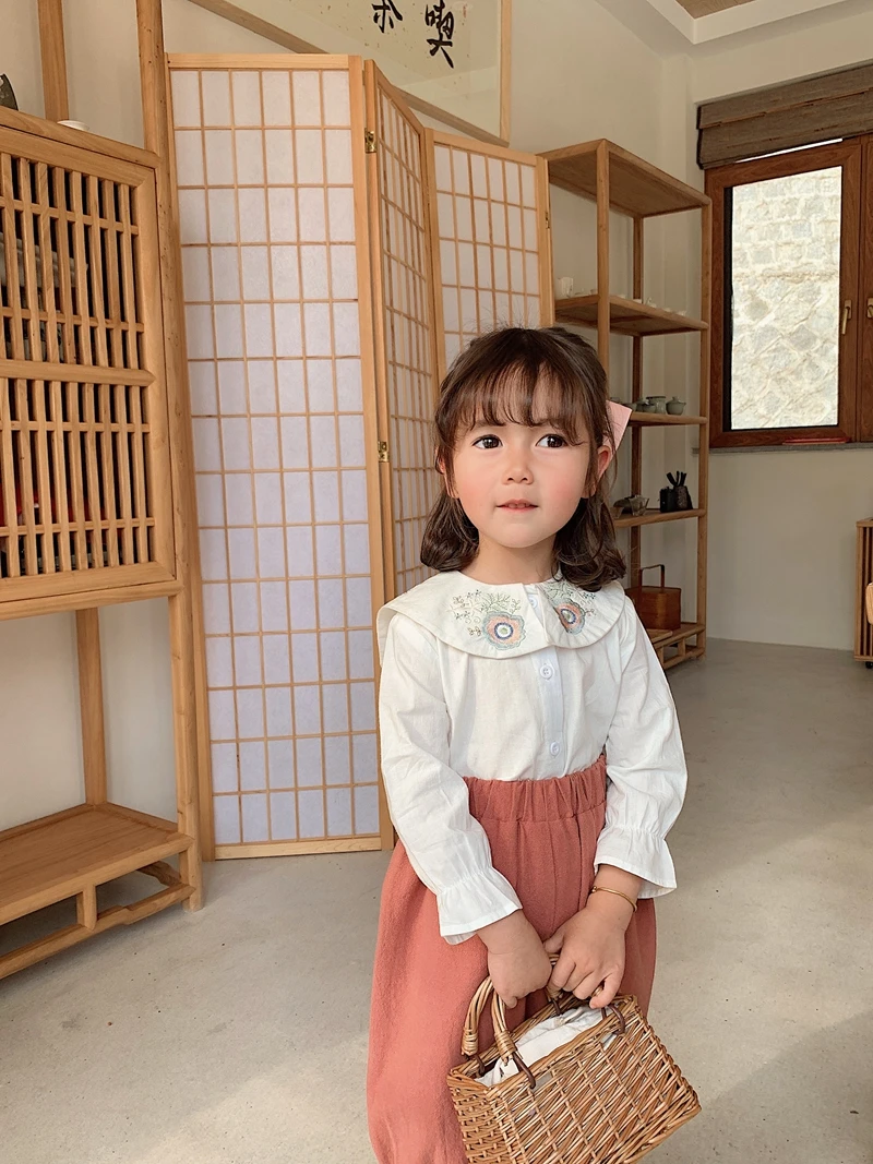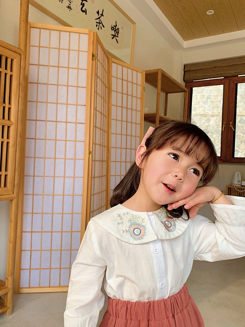 6700/High Quality Spring Newest Kids Cotton White Shirts Floral Embroidery Simple Casual Girls Top
