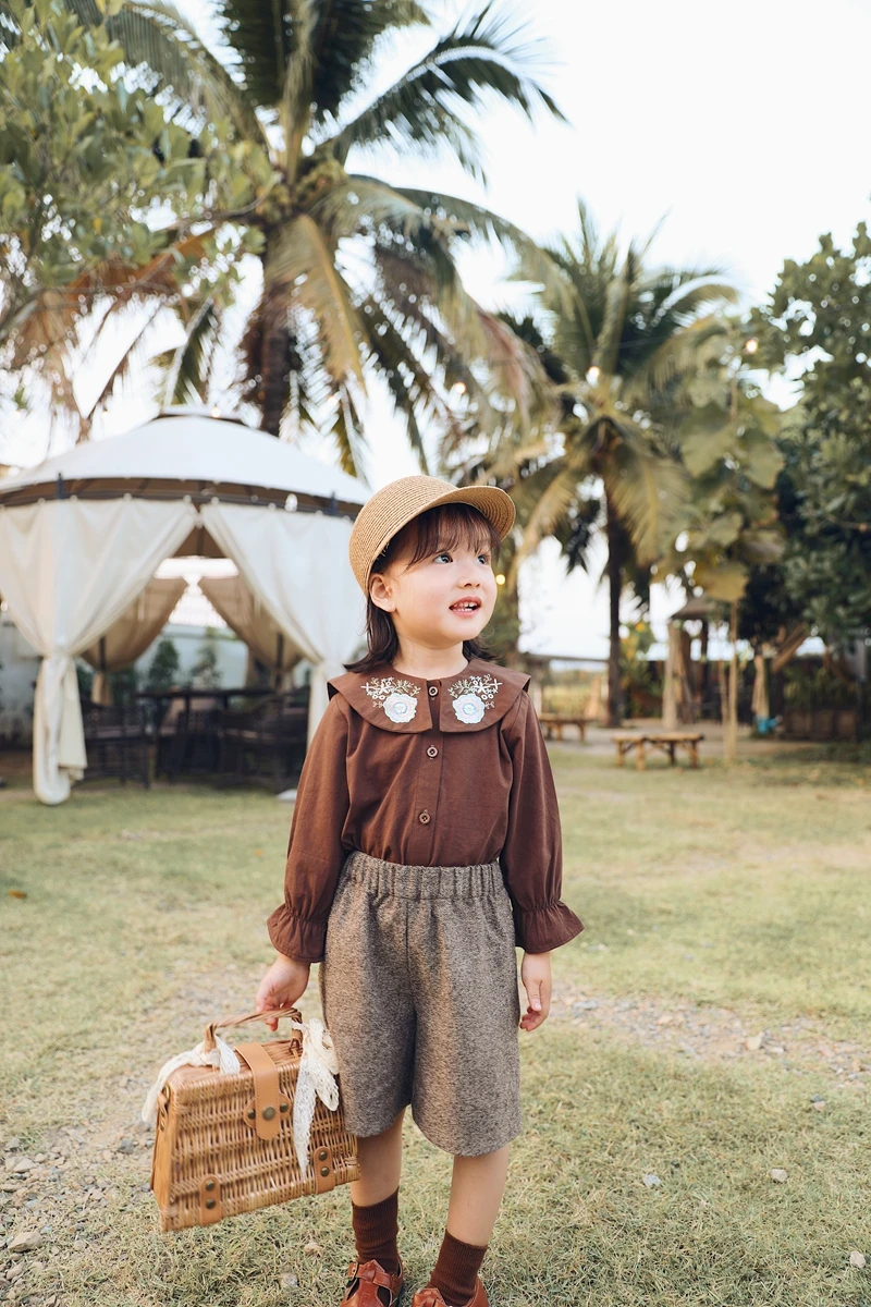 6710/Elegant Kids School Turn Down Collar Sweet Shirt Custom Korea Fashion Wholesale Girls Top