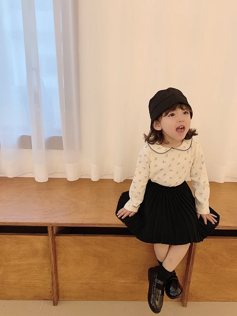 6596 Baby Boutique Clothing Kids Baby Girl Lapel Pointed Collar Printing Blouse