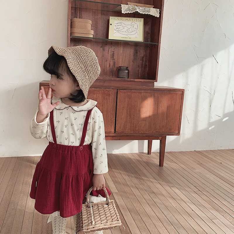 6883/Family Kids Full Sleeve t Shirt With Square Collars Fashion All Match Elegant Top