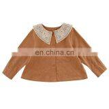 6816/Customize Kids Cotton Long Sleeve Lace Turn-down Collar Shirt Sweet Elegant Casual Girls Top