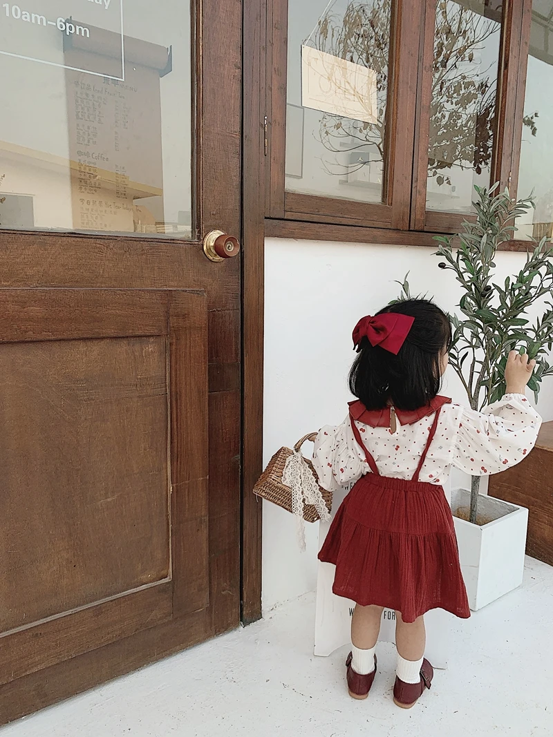 6815/High Quality Cotton Fabric Korea Fashion Shirts Kids Button up Long Sleeve Boutique Girls Top