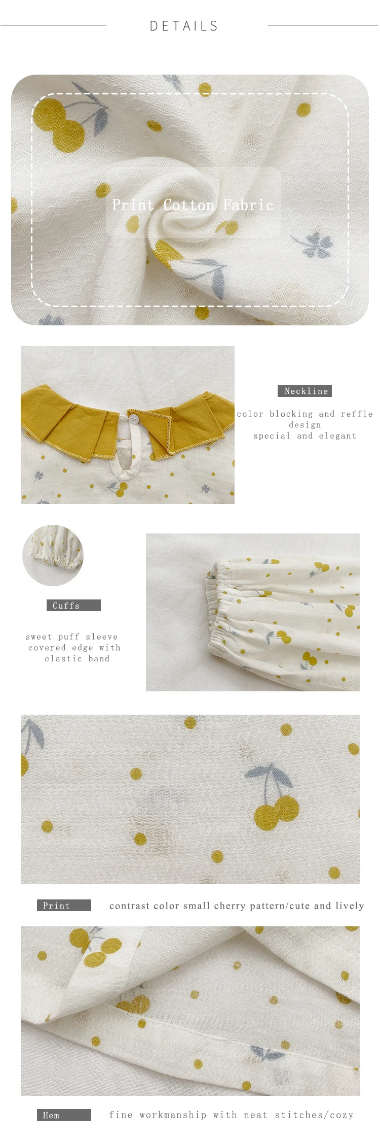 6750/Latest Spring Cherry Pattern Puff Sleeve Customized Kids Shirt High Quality Graceful Girls Top