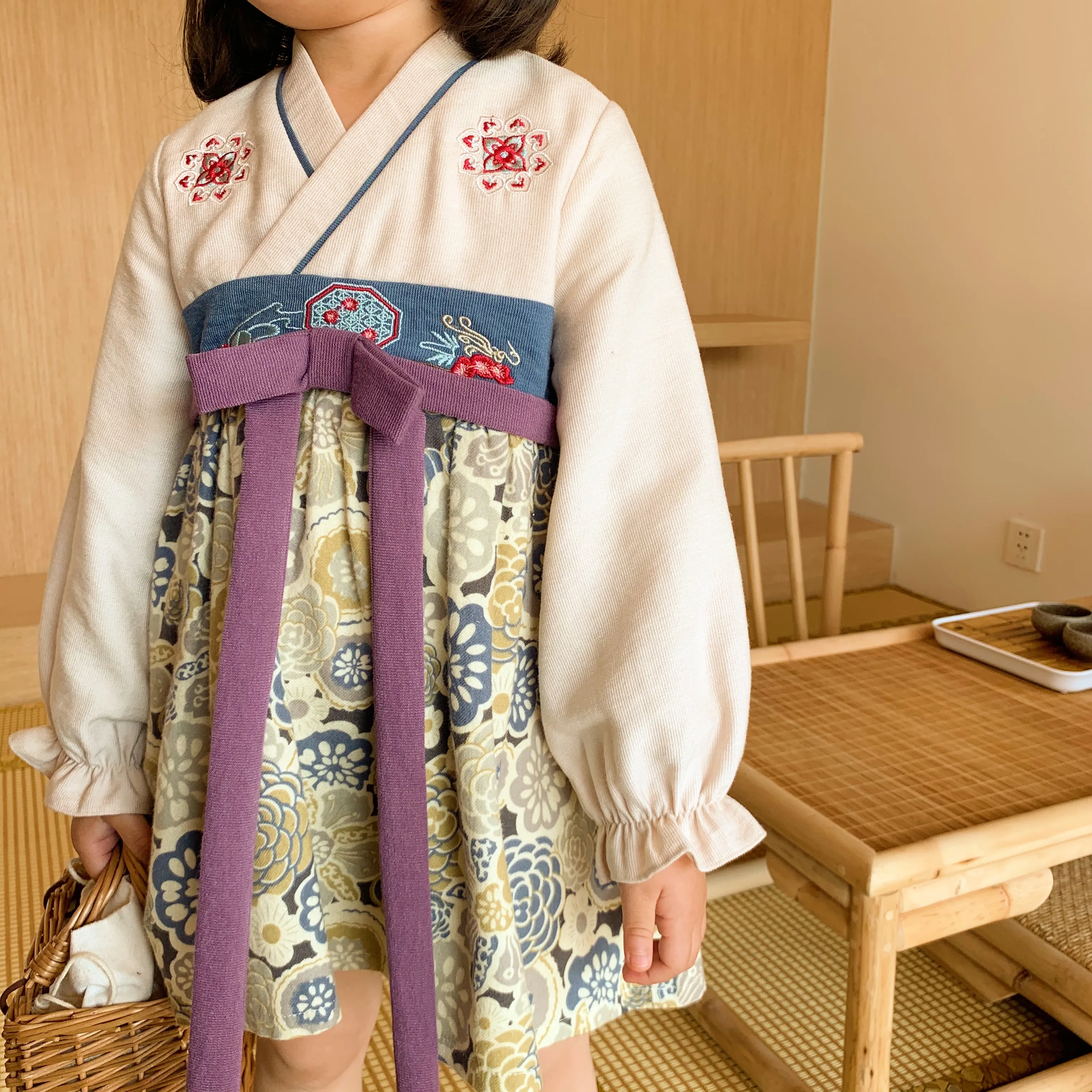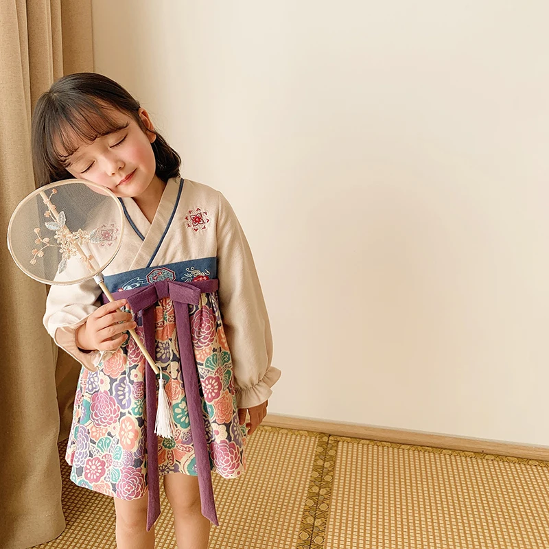 6731 Kids Clothing Chinese Style Dress Kids Casual Clothes Child Baby Girl Embroidered Dress
