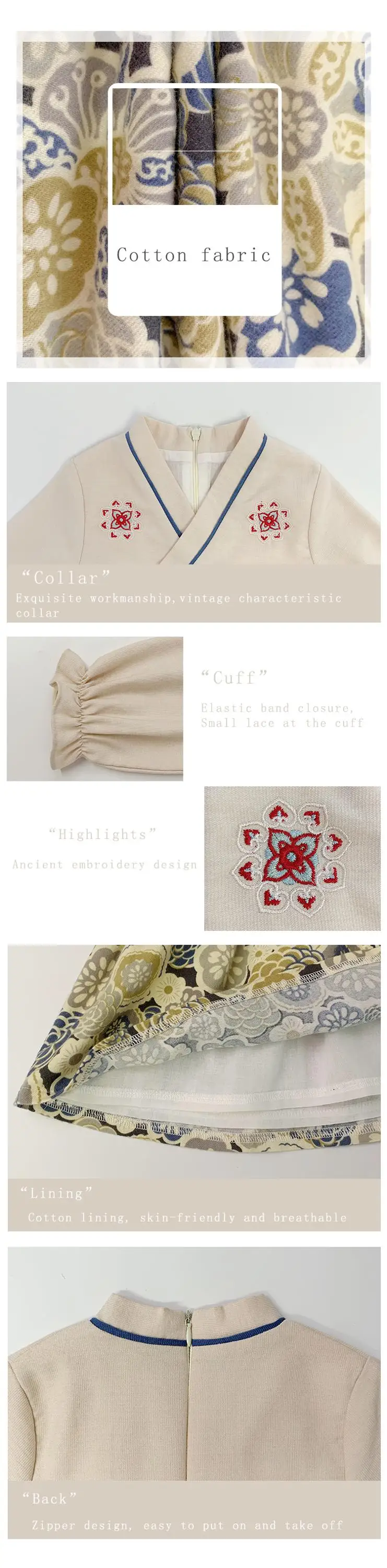 *Design: Cotton, Long Sleeve,Invisible zipper.