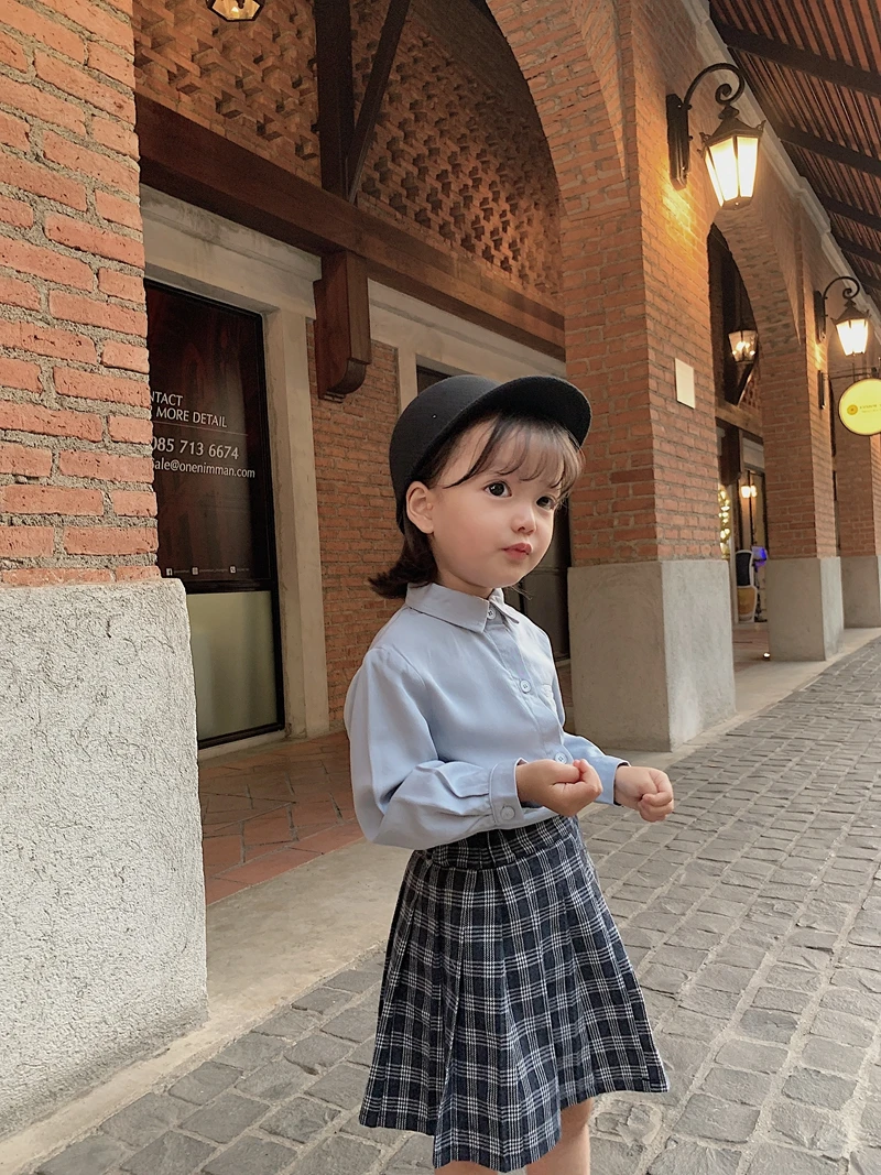 C1025/Hot Sell Wholesale Fashion Cotton Baby Girls Pleated Knee Skirt High Quality School Kid Clothing