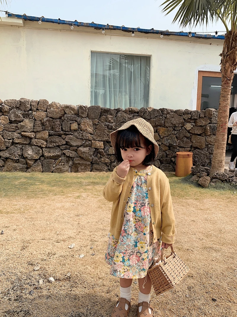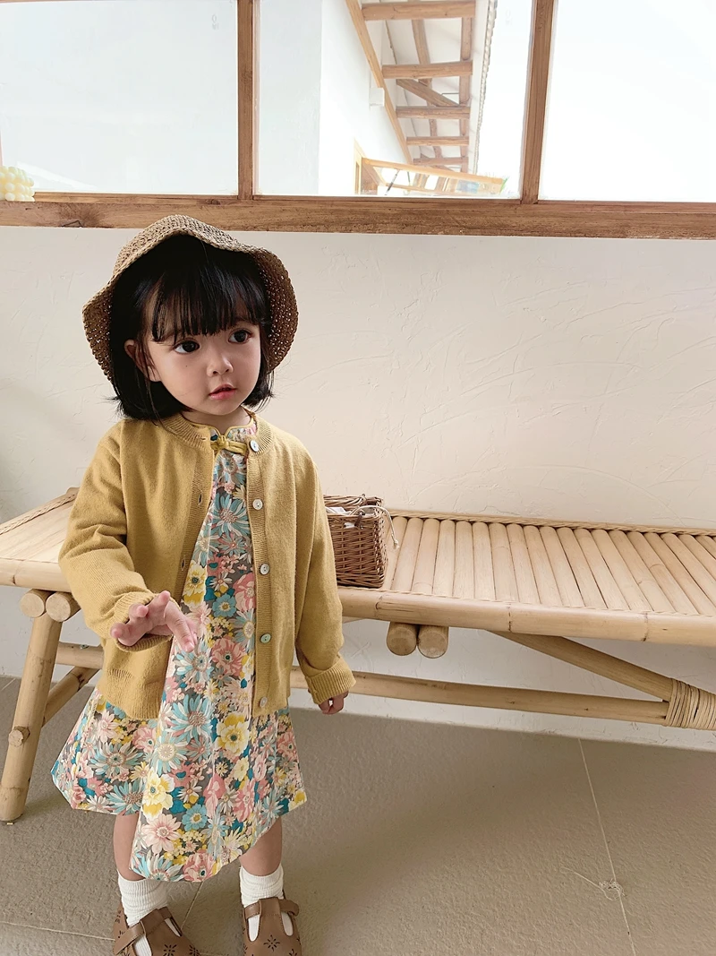 C1076/Cotton Simple Fashion Kids Sweater Coat Girls Wholesale Boutique Knit Cardigan