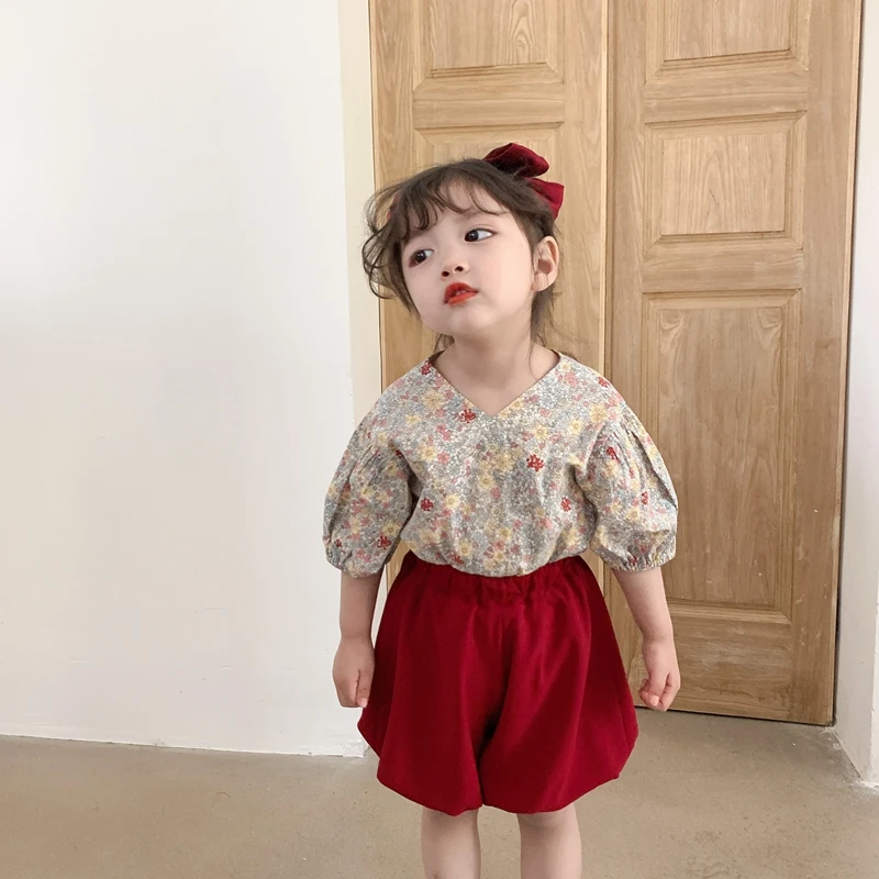 Home > Products > 2020 Spring clothes > X1230/Floral High Quality Kids V-neck Short Sleeve t Shirt Summer Latest Design Sweet Elegant Kids Top