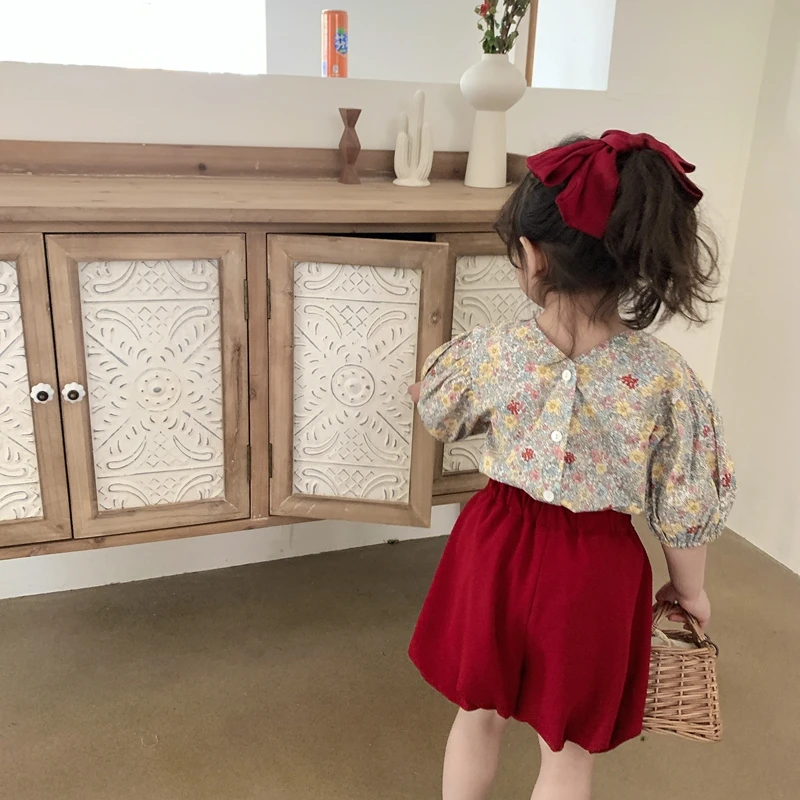 X1230/Floral High Quality Kids V-neck Short Sleeve t Shirt Summer Latest Design Sweet Elegant Kids Top