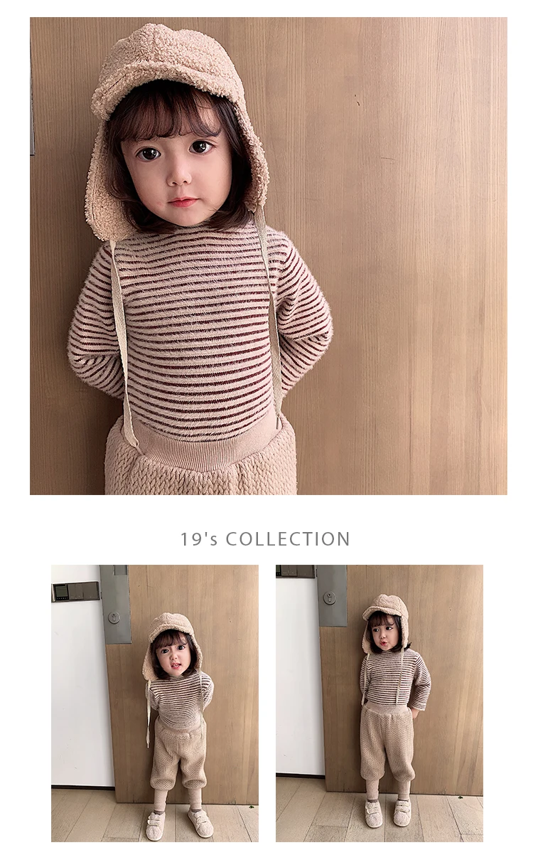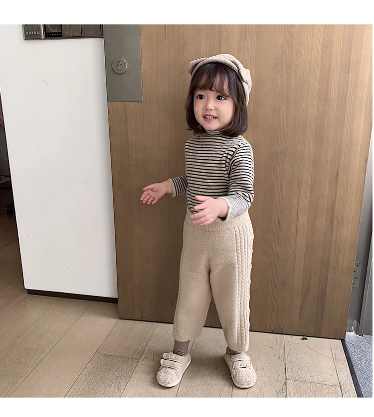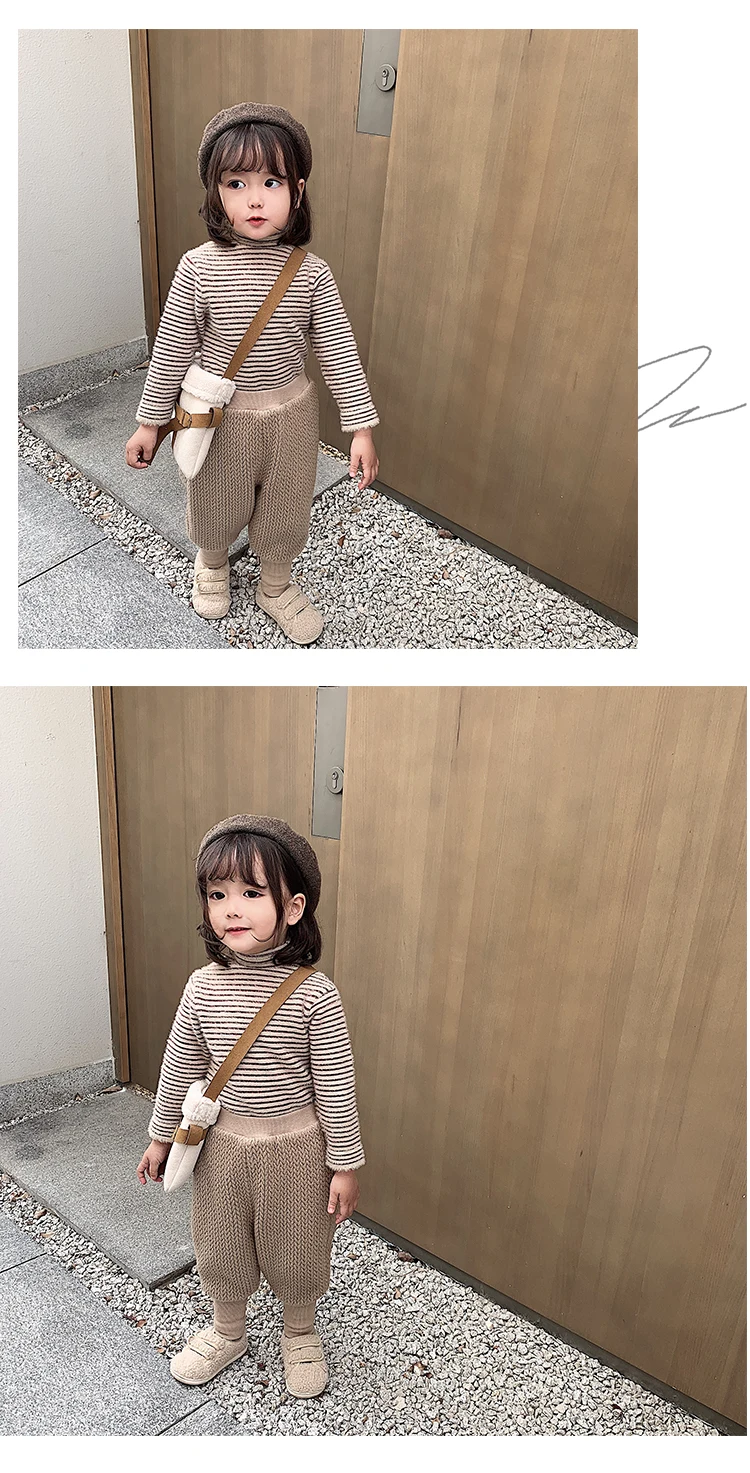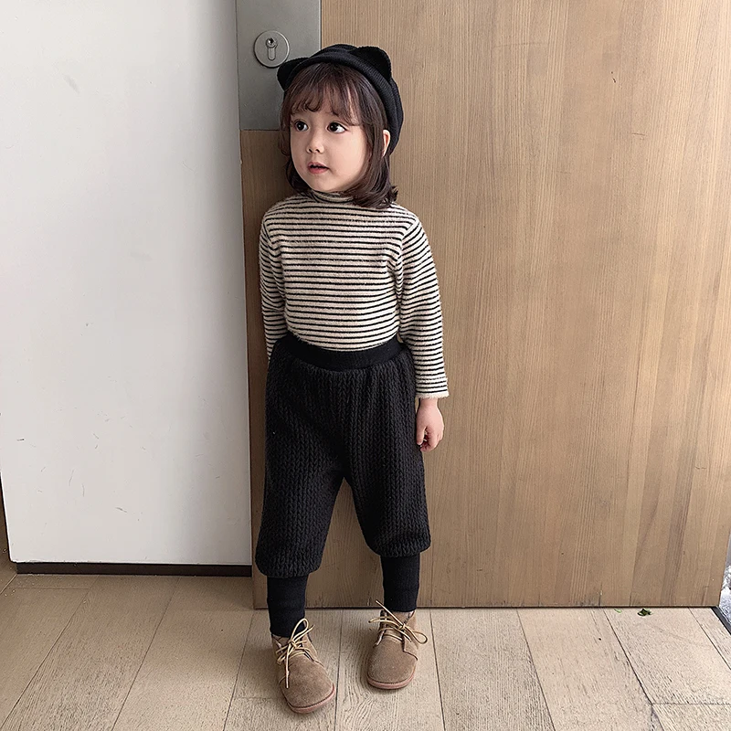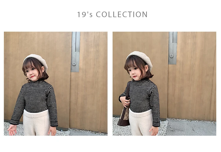 4097/Hot Selling Various Color Warm Stripe Kids Undershirt Wholesale Autumn Winter Girls Top