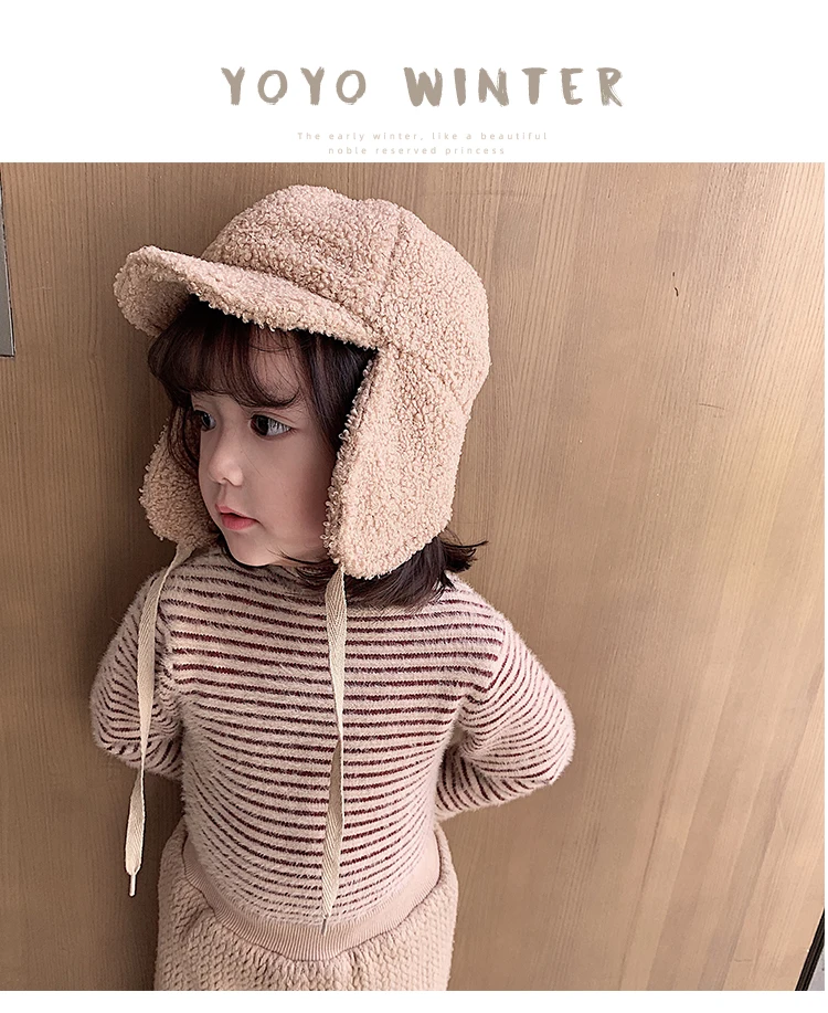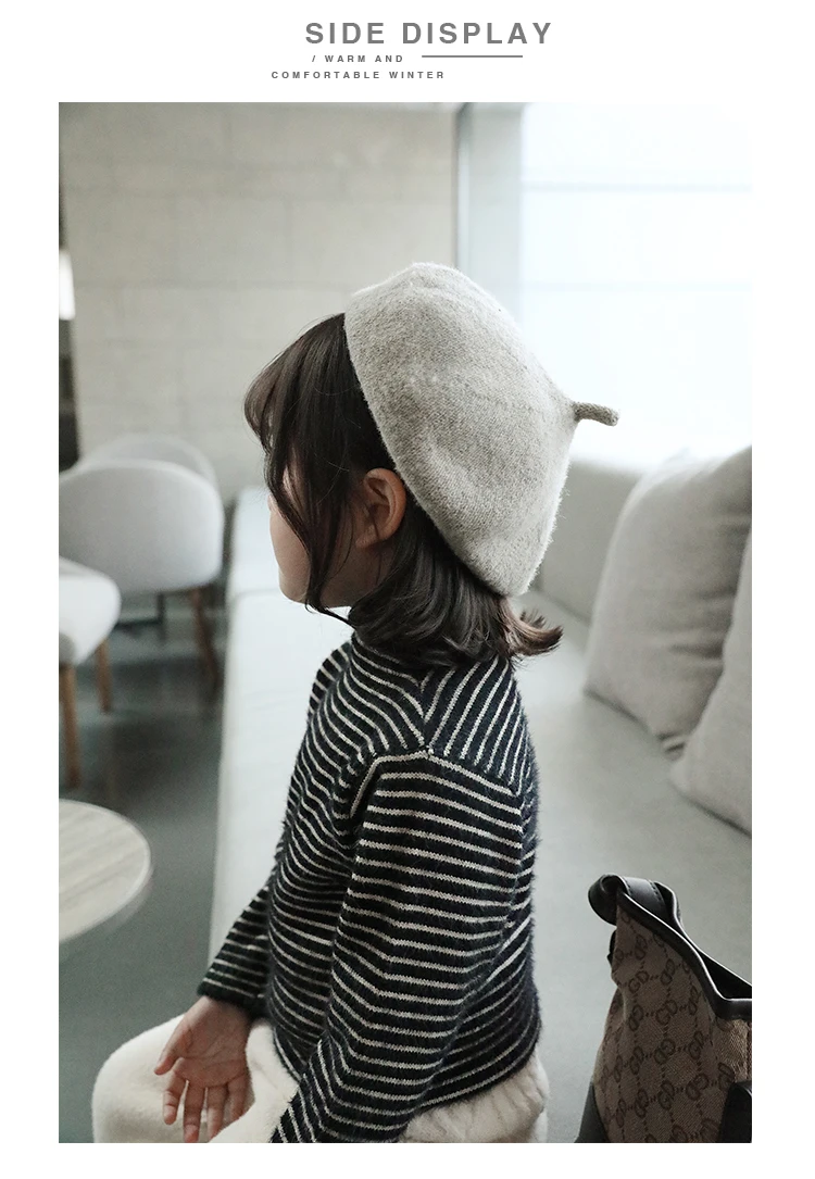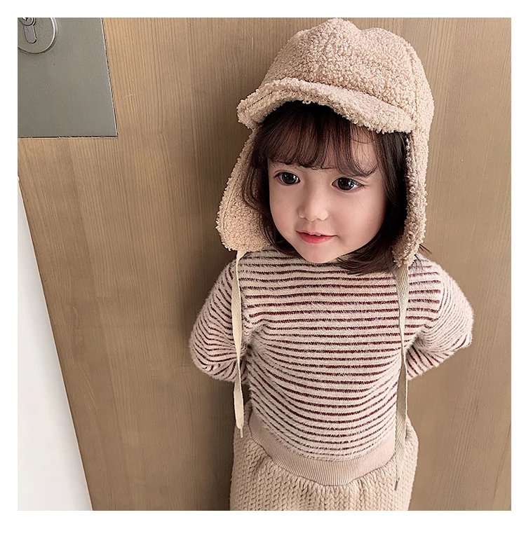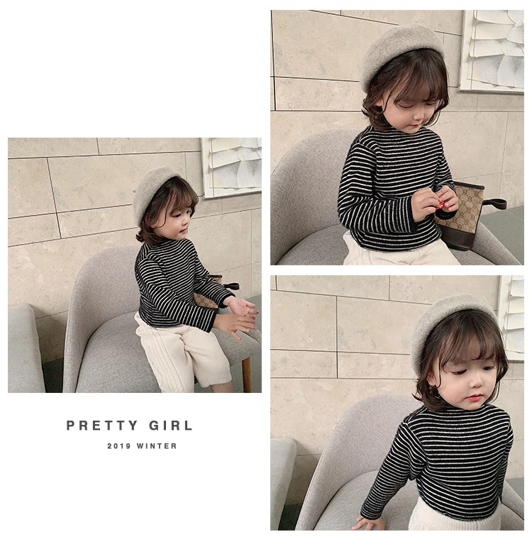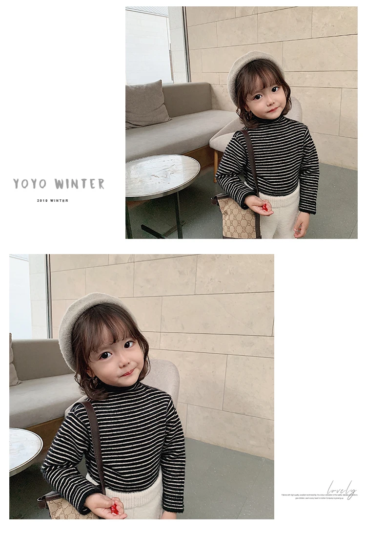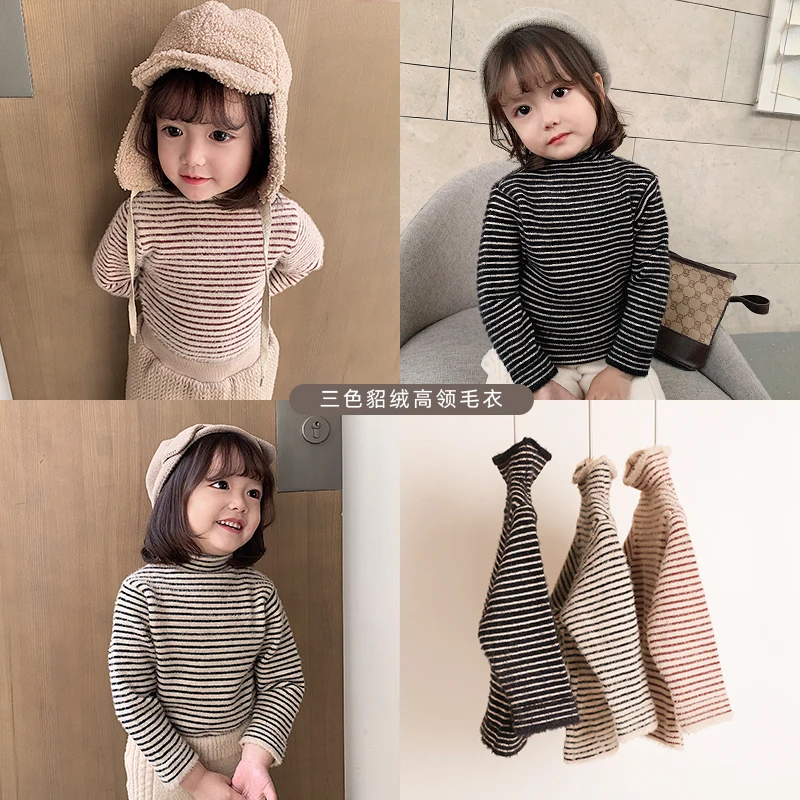 4097/2020 Newest High Quality Mink Cashmere All-match Girl Stripe Top Winter Fashion Warm Kids Clothes