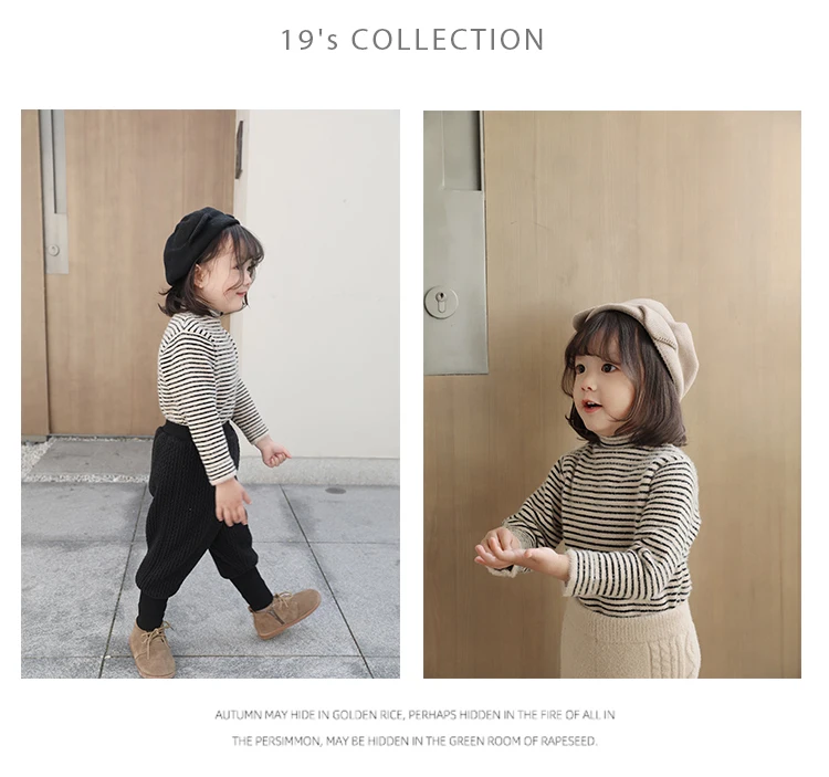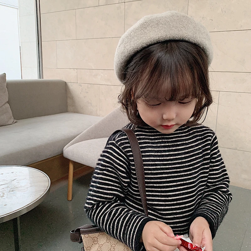 4780/Hot Sell Korea Style Warm All-match Girl Stripe Sweater Newest Winter Fashion Kids Top