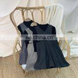 Girls Dress Autumn 2020 New Korean Version of Simple Plaid Stitching Skirt Medium and Large Children Long-sleeved Ruffle Skirt