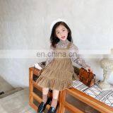 2020 Autumn and Winter Kids Girls High Neck Thick Velvet Corduroy Long Dress