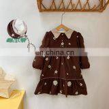 2020 Autumn and Winter New Korean Children's Skirt Girls Plus Velvet Embroidery Light Cord Velvet Dress Retro Long Skirt