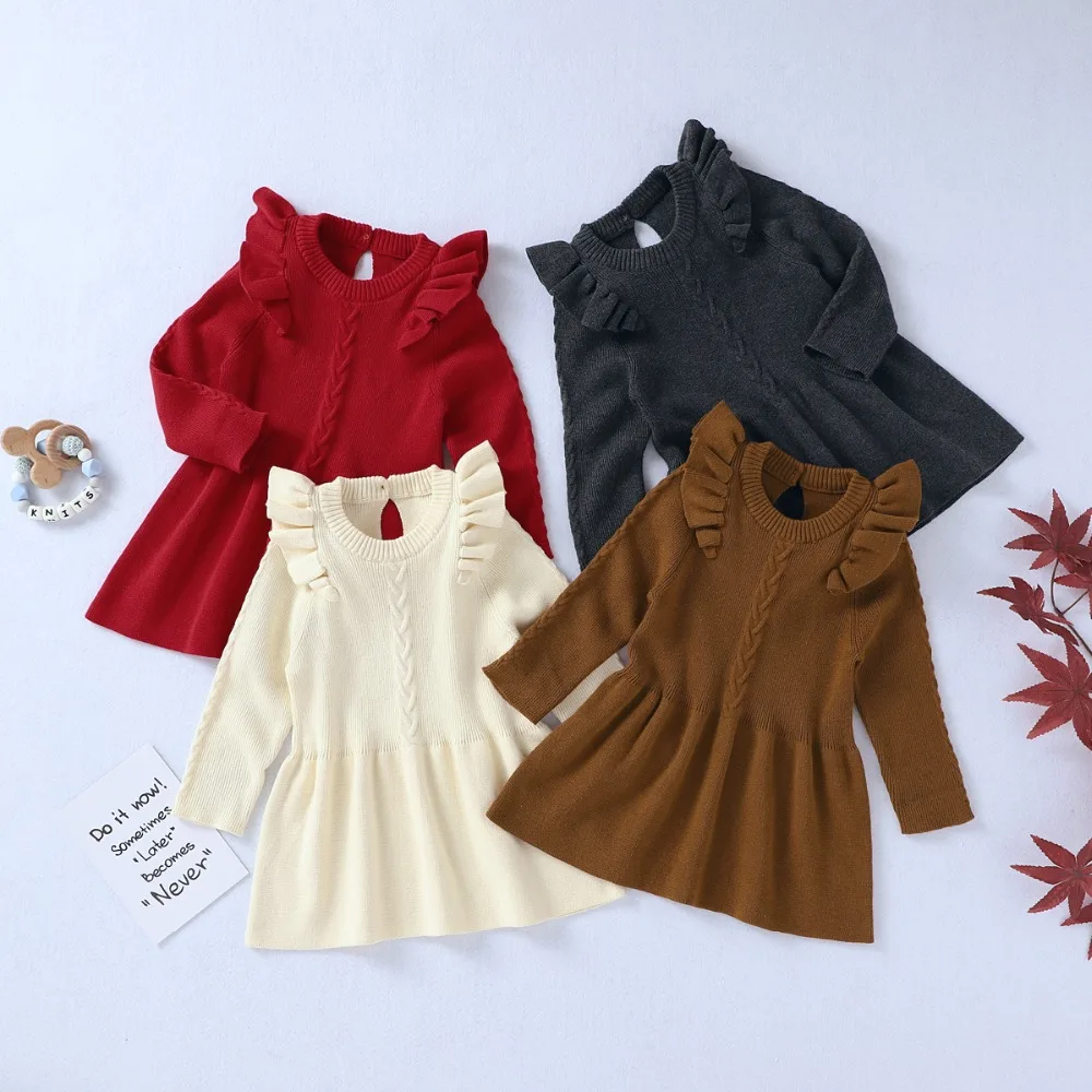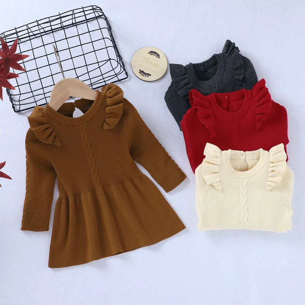 Winter Baby Girl Knitted Dress Warm Autumn Toddler Girls Ruffled Sleeve Sweater Dress Clothing Outfits Christmas Dresses