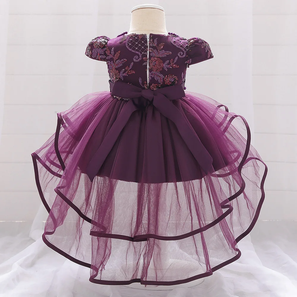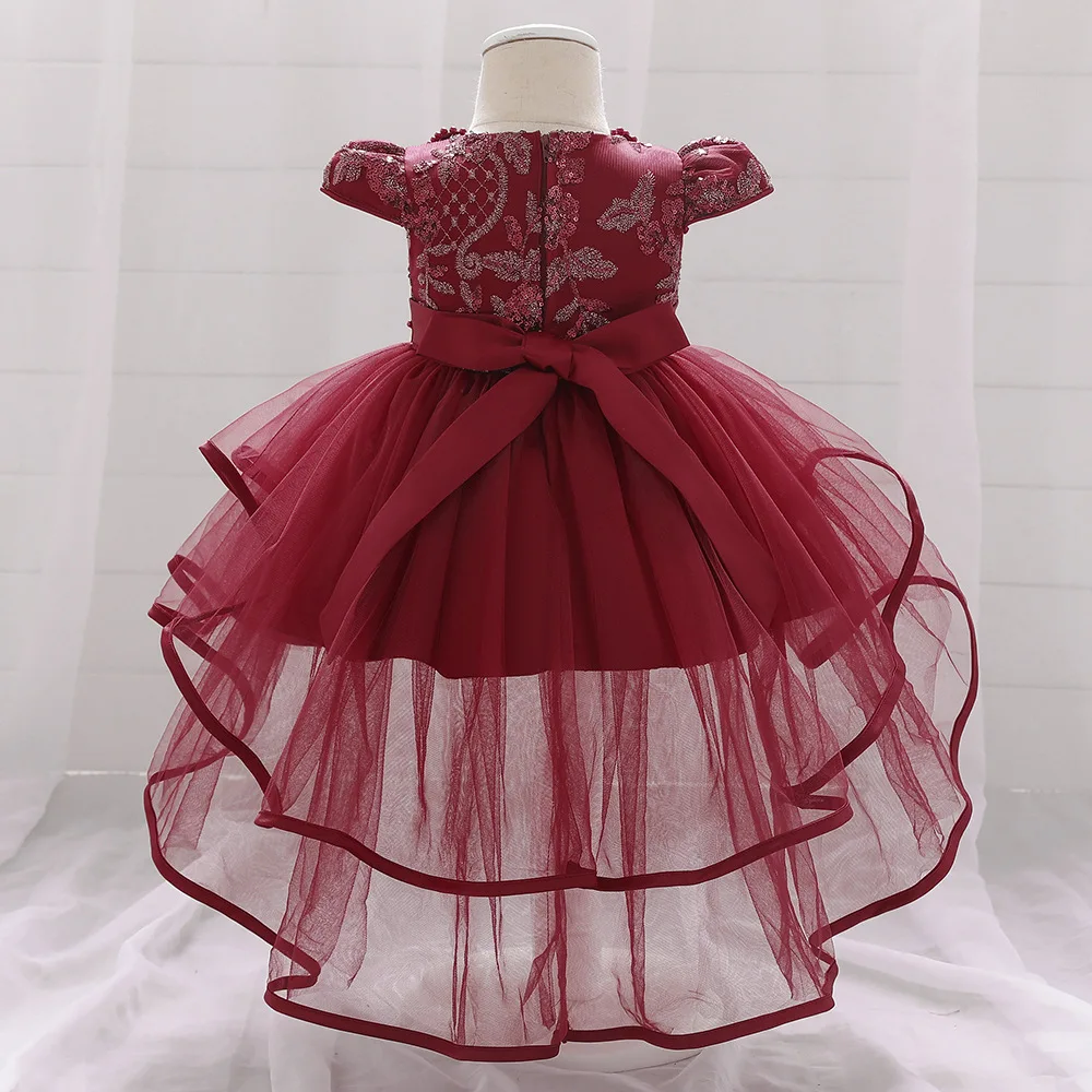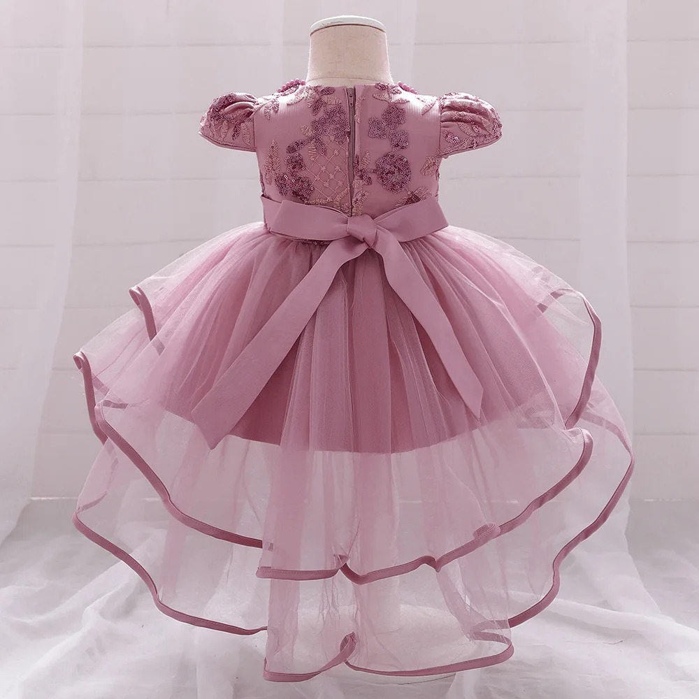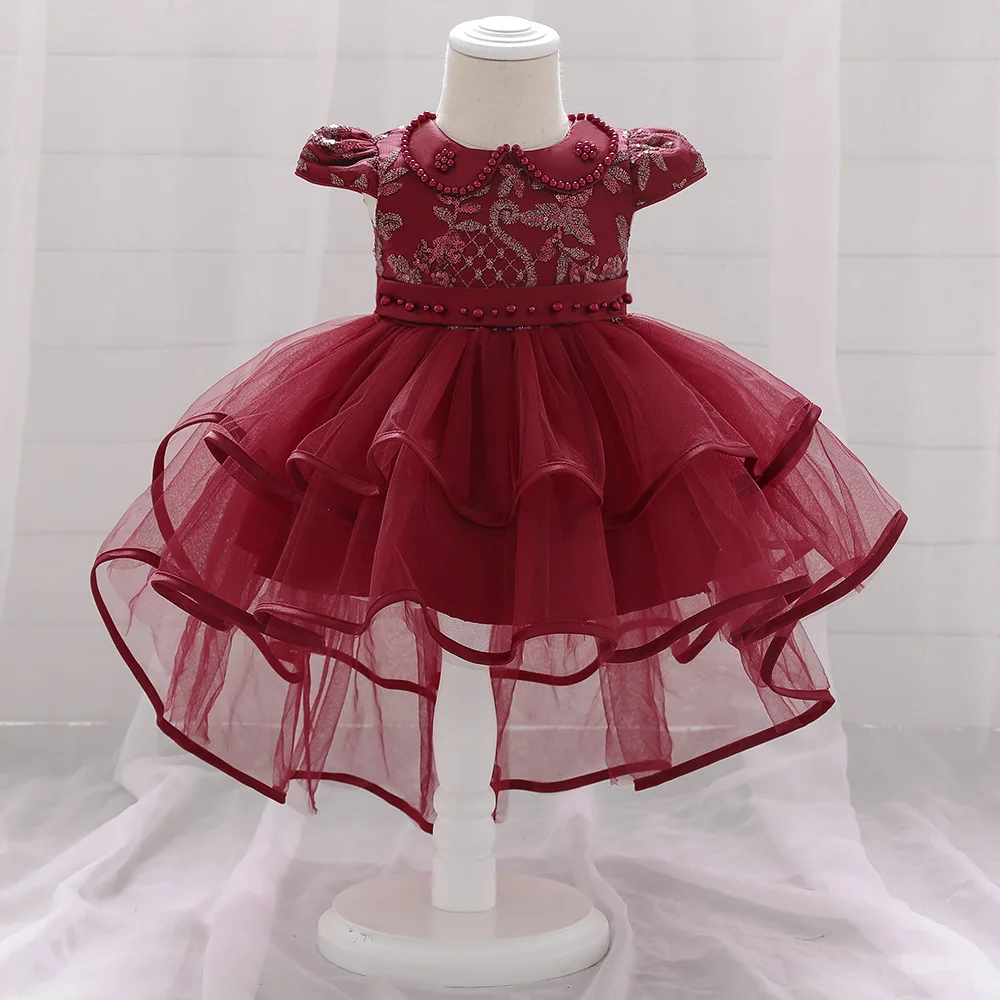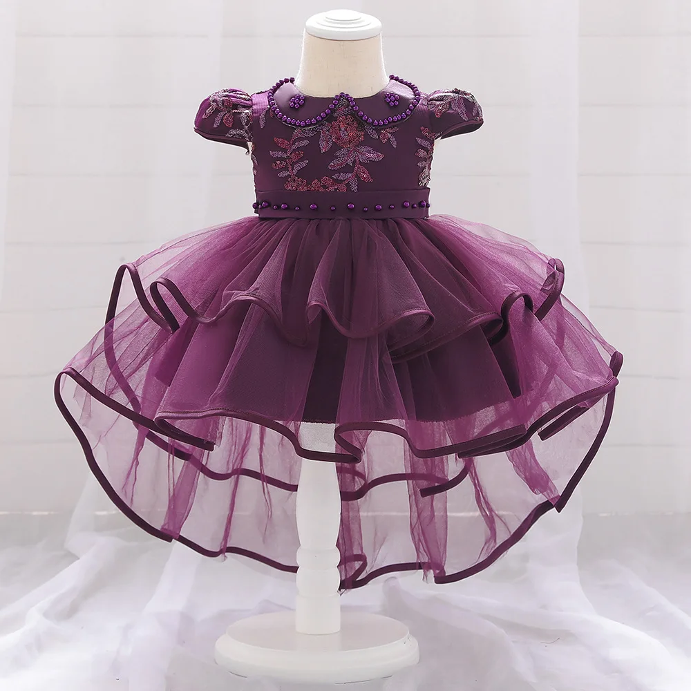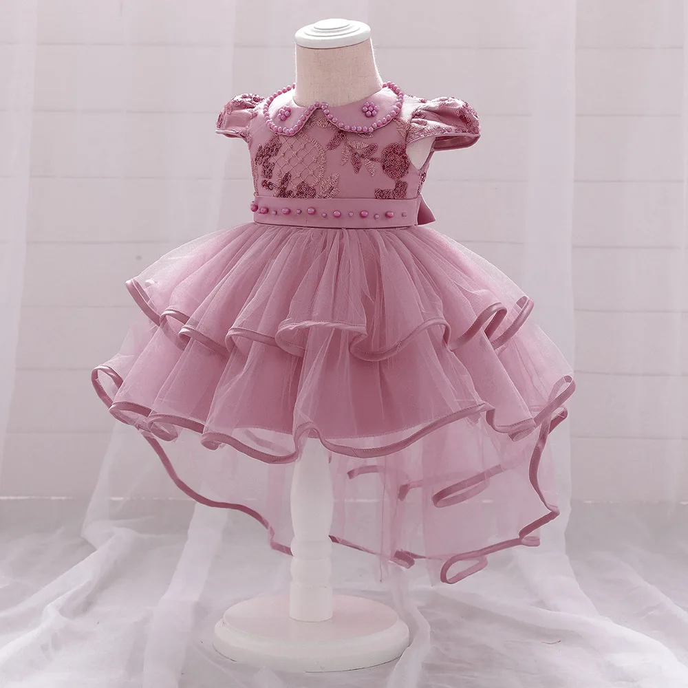 2020 New Embroidery Pearl Short Sleeve Design Party Baby Girls Dress Birthday Party Kids Frock
