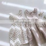 2020 New Korean Spring and Autumn Girls Polka Dot Sleeveless Suspender Dress Fashion Lace Pocket Casual Linen Dress