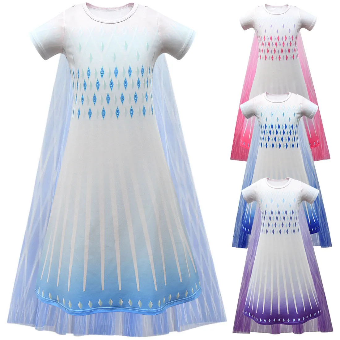 Girls Dress 2020 Summer Cotton Shorts Sleeves Print Clothes Kids Dress