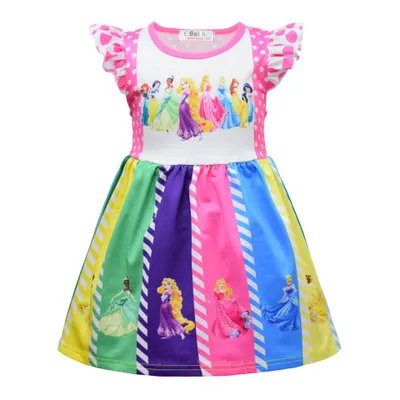 A0160# Summer Girls Dress 2020 Cotton Print Cartoon Sleeve Kids Clothes Dress