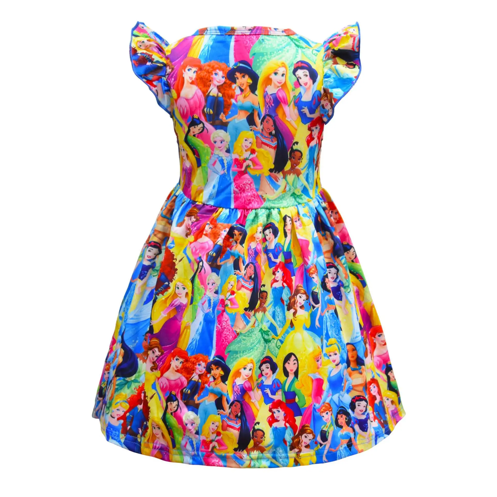 A0182# Girls Dress 2020 Summer Cotton Sleeves Print Cartoon Clothes Kids Dress