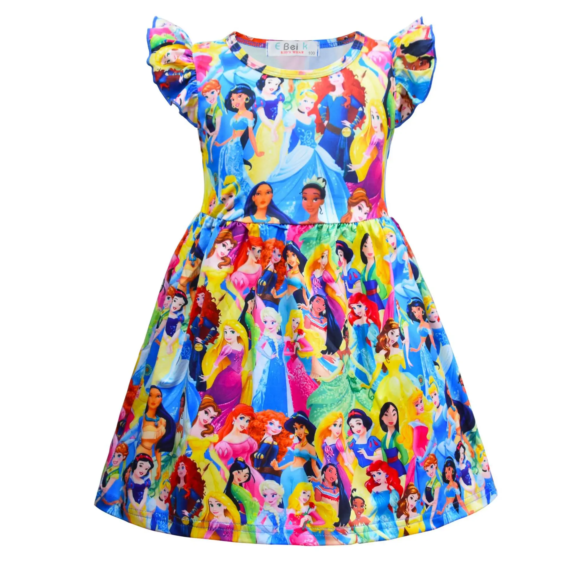 A0160# Summer Girls Dress 2020 Cotton Print Cartoon Sleeve Kids Clothes Dress